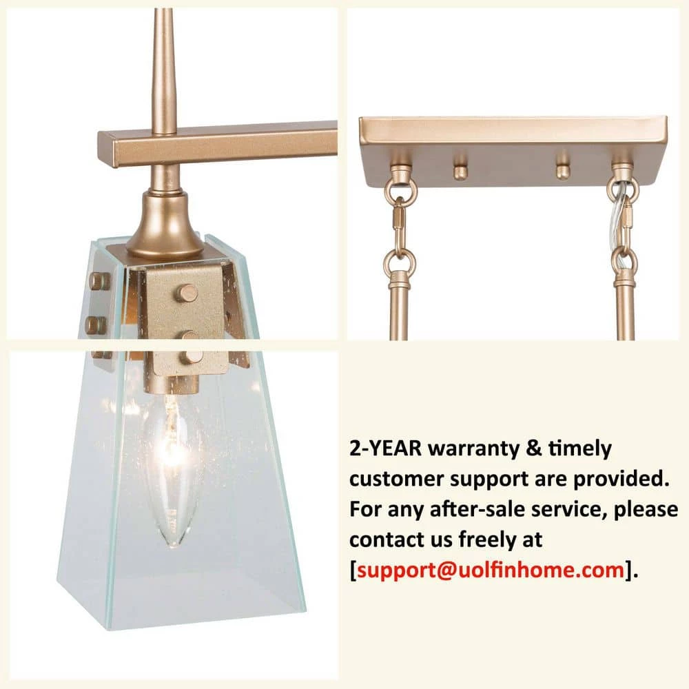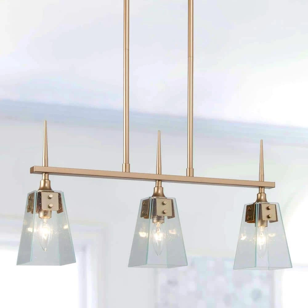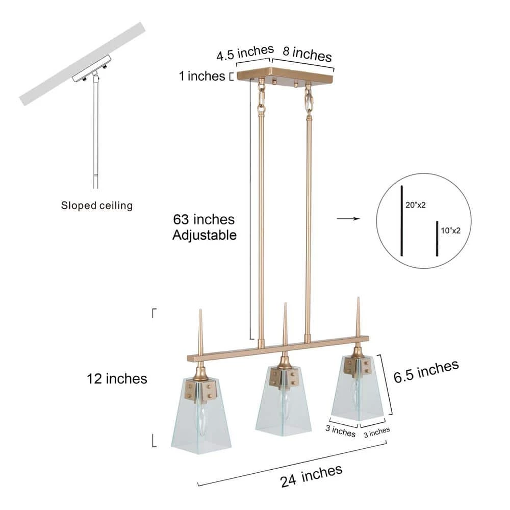 - UL LISTED & DURABLE: For safe use, the Modern Contemporary Island Chandelier, 3-Light Gold Brass Linear Chandelier Ceiling Light is UL Listed, sturdy metal construction is built to last in dry locations and offers a clean look