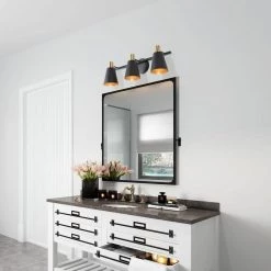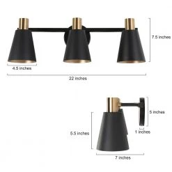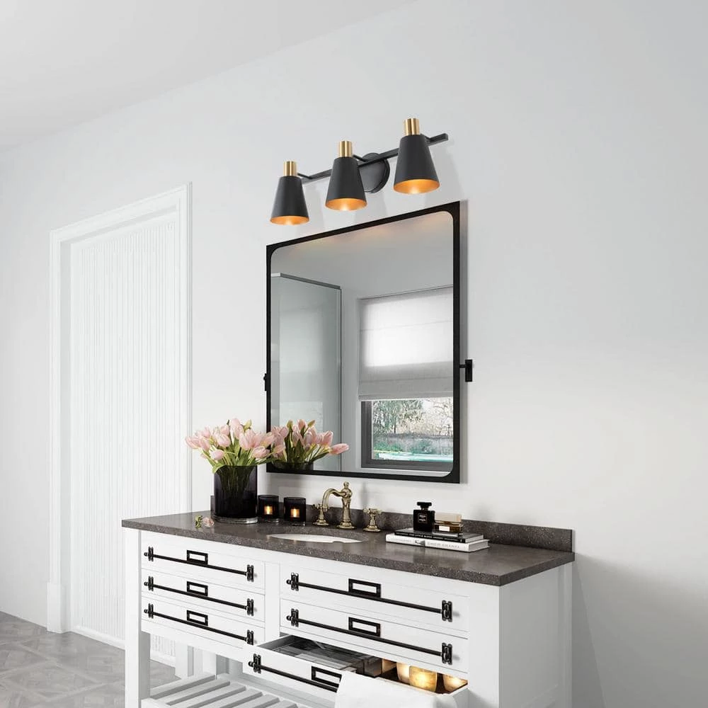 The classic black and gold bathroom vanity light of the Uolfin Lighting walks into your bathroom, not only bringing light to the house, but also adding a mid-century modern charm to your bathroom. This transitional metal light combines modern and industrial elements. The black finish is mixed with golden embellishments. Horizontal bar supported by the rounded canopy, the light holder is firm, and the shade should not be deformed. The modern vanity light creates a minimalist and modern feel. The combination of gold and black shows a unique beauty. If your bathroom or powder room is looking for such a light, this wall sconce must be a good choice. Of course, this retro wall light can be used in damp, but it is not limited to bathroom use. It can also be installed in other combinations in the room with your imagination.