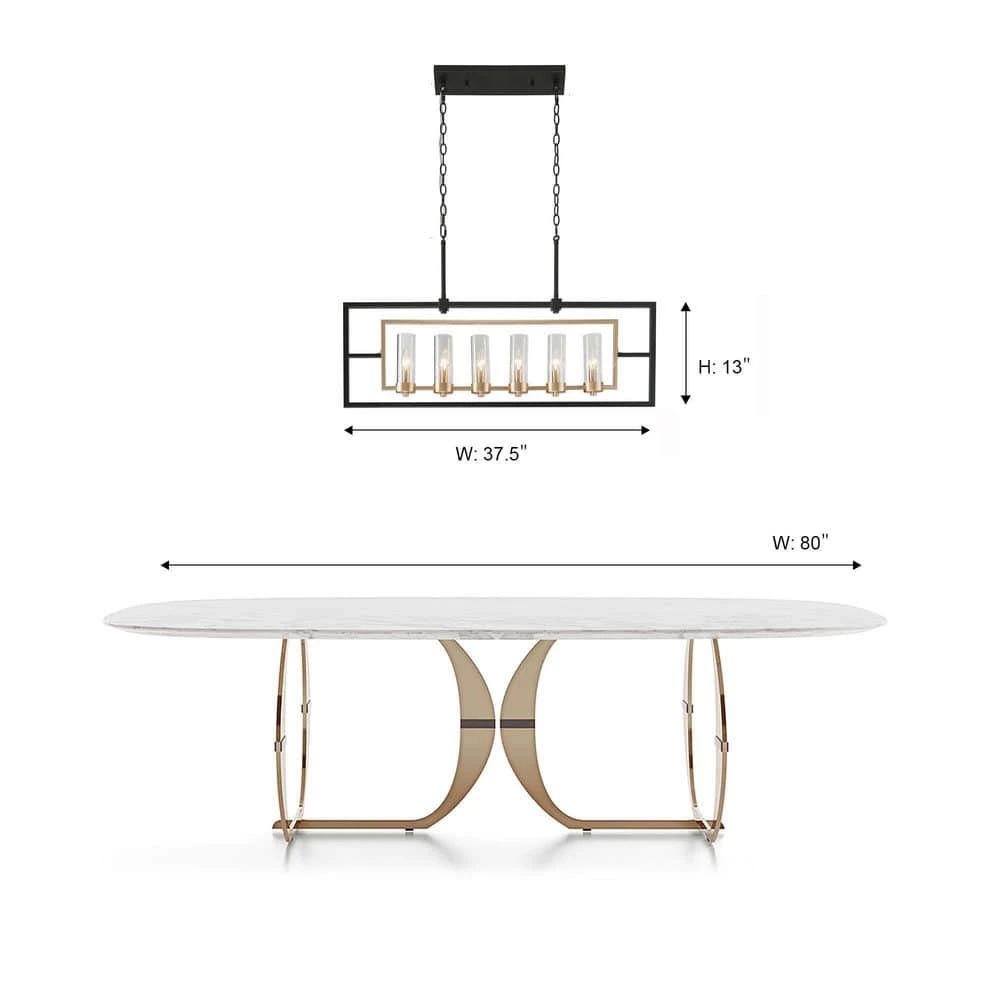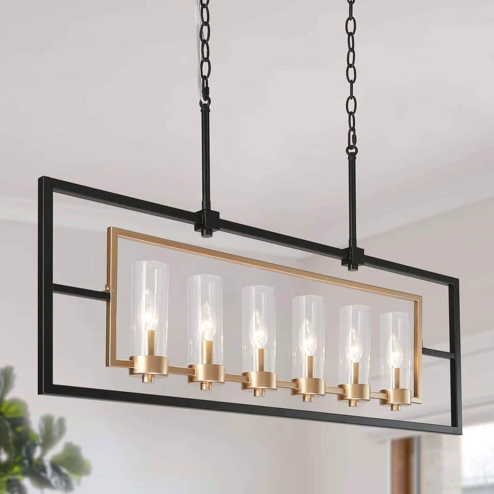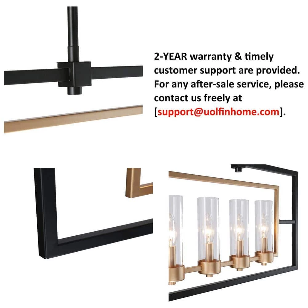 - BEST MATCH: the rectangle chandelier light finished in black and brass perfectly matches the Uolfin Kitchen Island Pendant Light (320400388), both in design style and visual effects. These two light fixtures create a modern and classic ambiance in the dining area and any other place