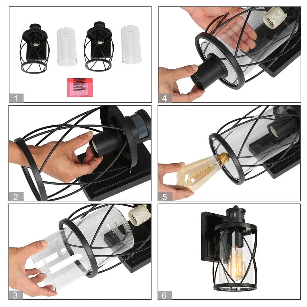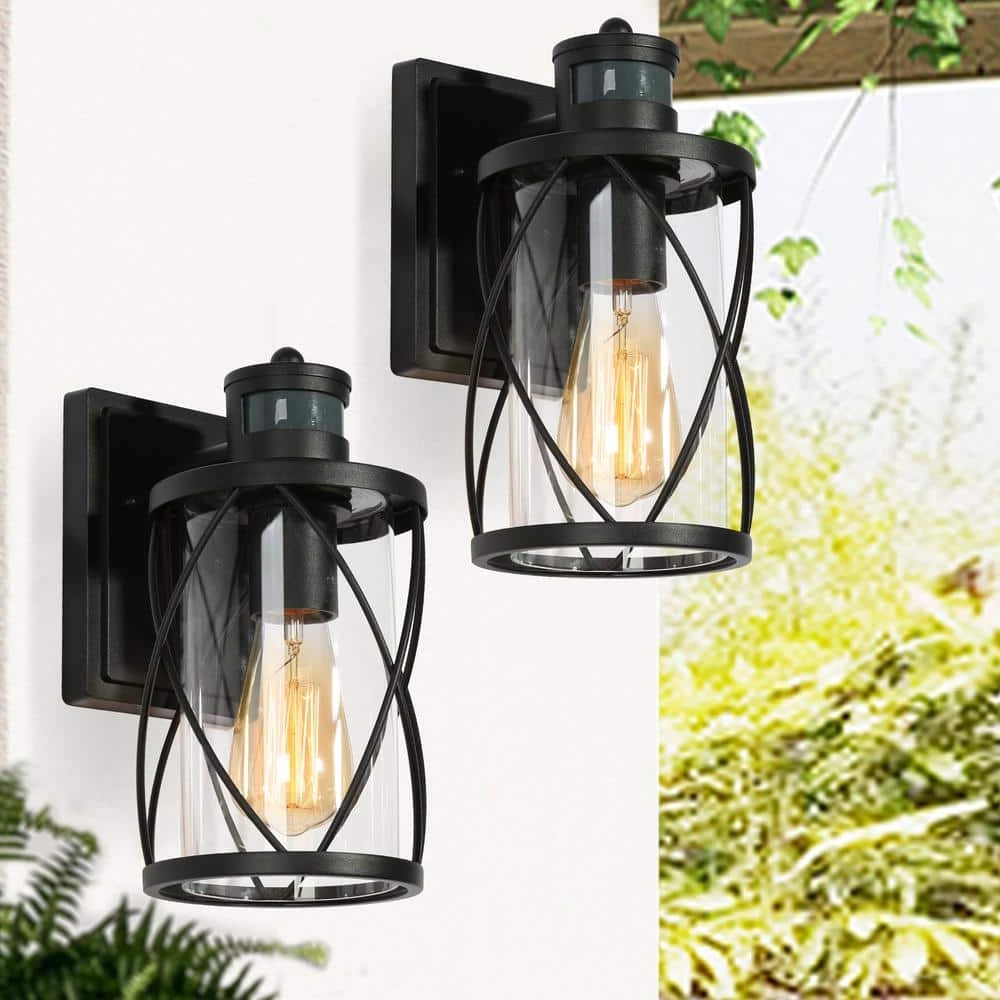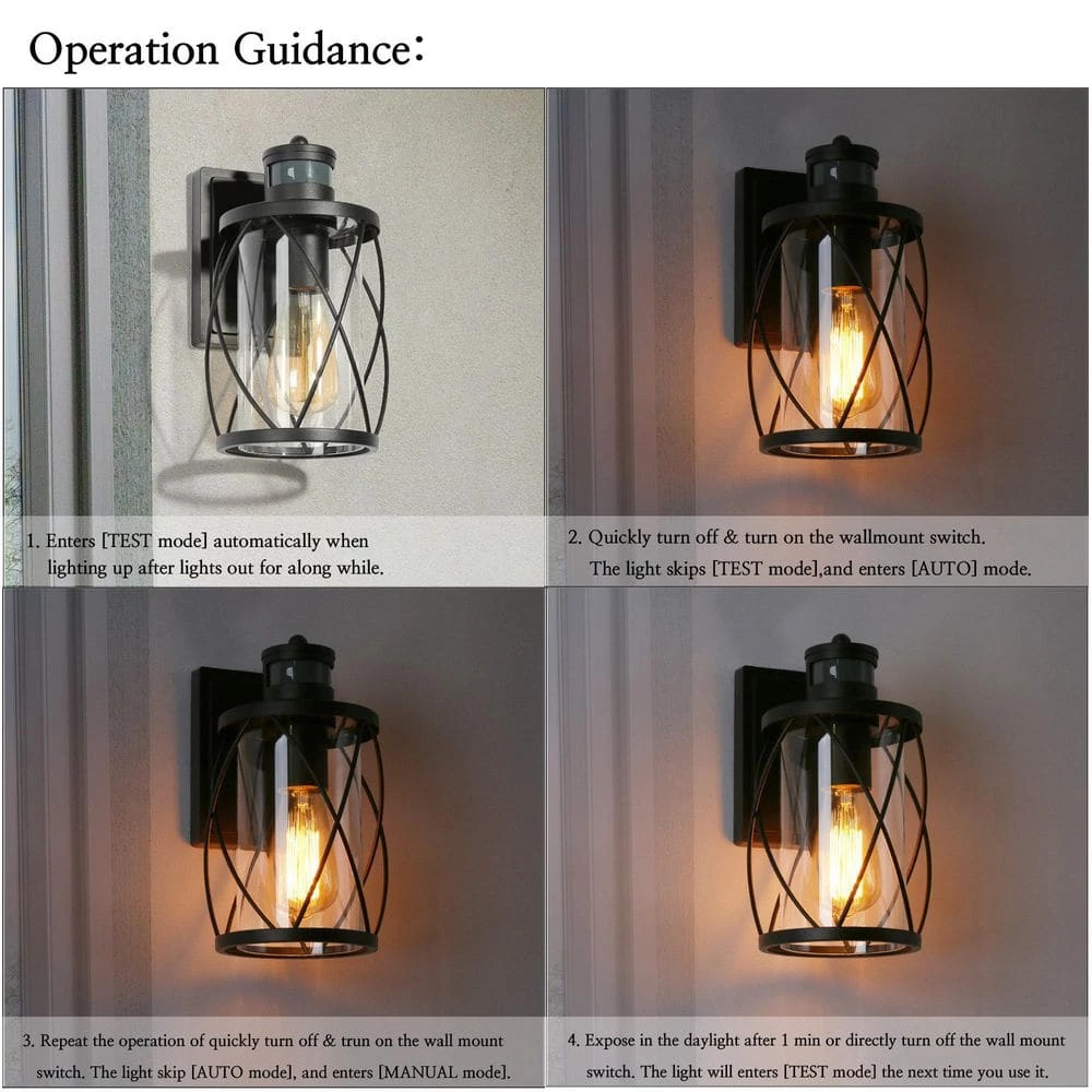 The clean lines and hand-riveted accents make the black outdoor wall light an ideal choice for industrial-style exterior decor. A rustic cage-shaped framework with clear glass shade provides an unobstructed view of the lantern’s sleek interior. The matte black finish further enhances the chic appearance of this refined collection, transition comfortably from traditional farmhouse to modern industrial decors. This Uolfin outdoor light can reach the function that other outdoor lights do and even better. This sensor outdoor light has 2 sensor modes that can be adjusted to suit your needs. Abandon complicated decoration the outdoor wall light has a rustic modern aesthetic with a cage-shaped frame and cylinder clear glass shade which protects bulb from the dust and weather conditions. Perfect for mounting by the back door, by the garage, or as part of a pair by the front entrance, this wall lantern sconce will add light and flair to any outdoor space.