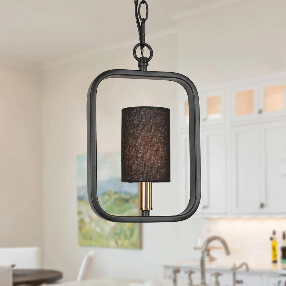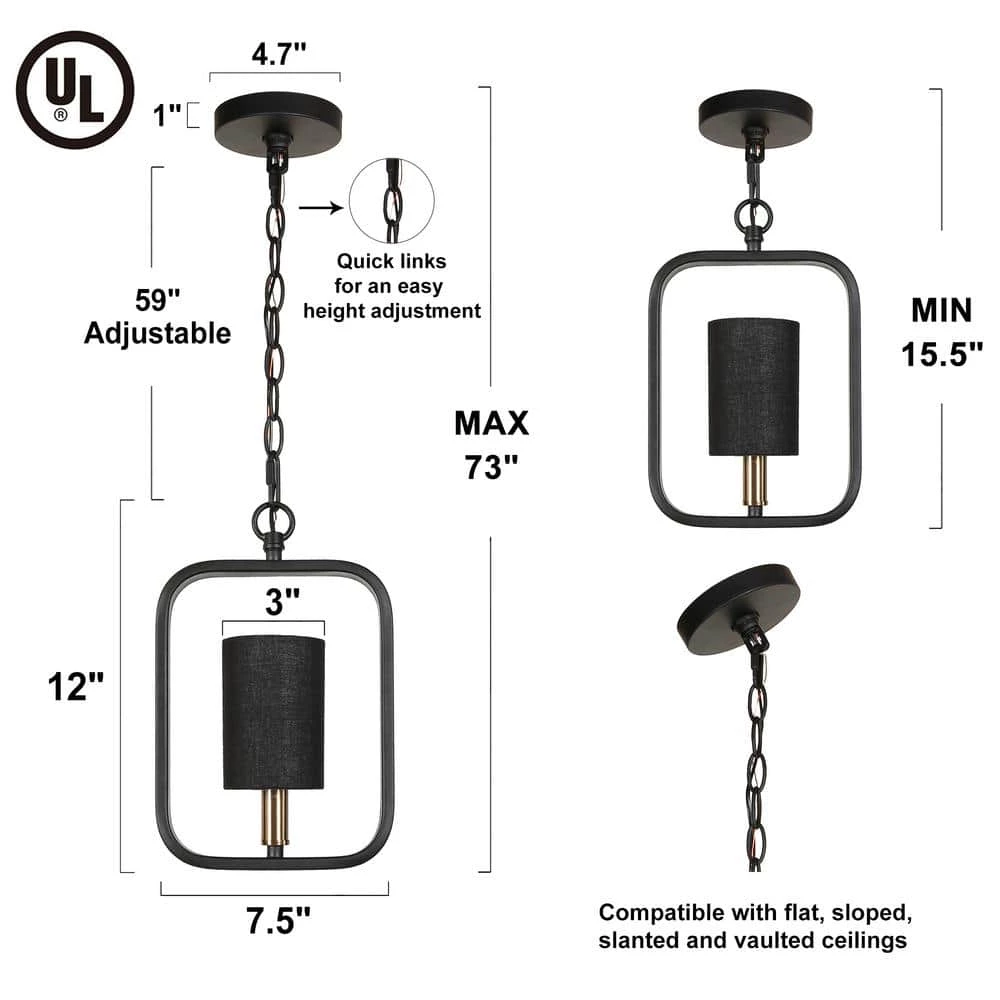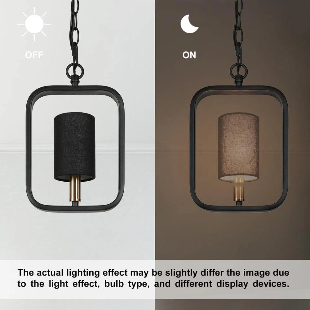 Adding a modern touch to your home decor while suiting your daily lighting needs, this pendant hanging light with fabric shade perfectly achieve all the above. Rectangle design comes up with a matte black color finish, the pendant light conducts a theme of simplicity. The black fabric shade that is accompanied, offers a fascinating atmosphere when powered on, and takes down the shade the light brighter. You can customize it in the way you prefer. Such a light fixture hanging over your kitchen island/dining table, the whole home decor is harmonious and full of modern charm.