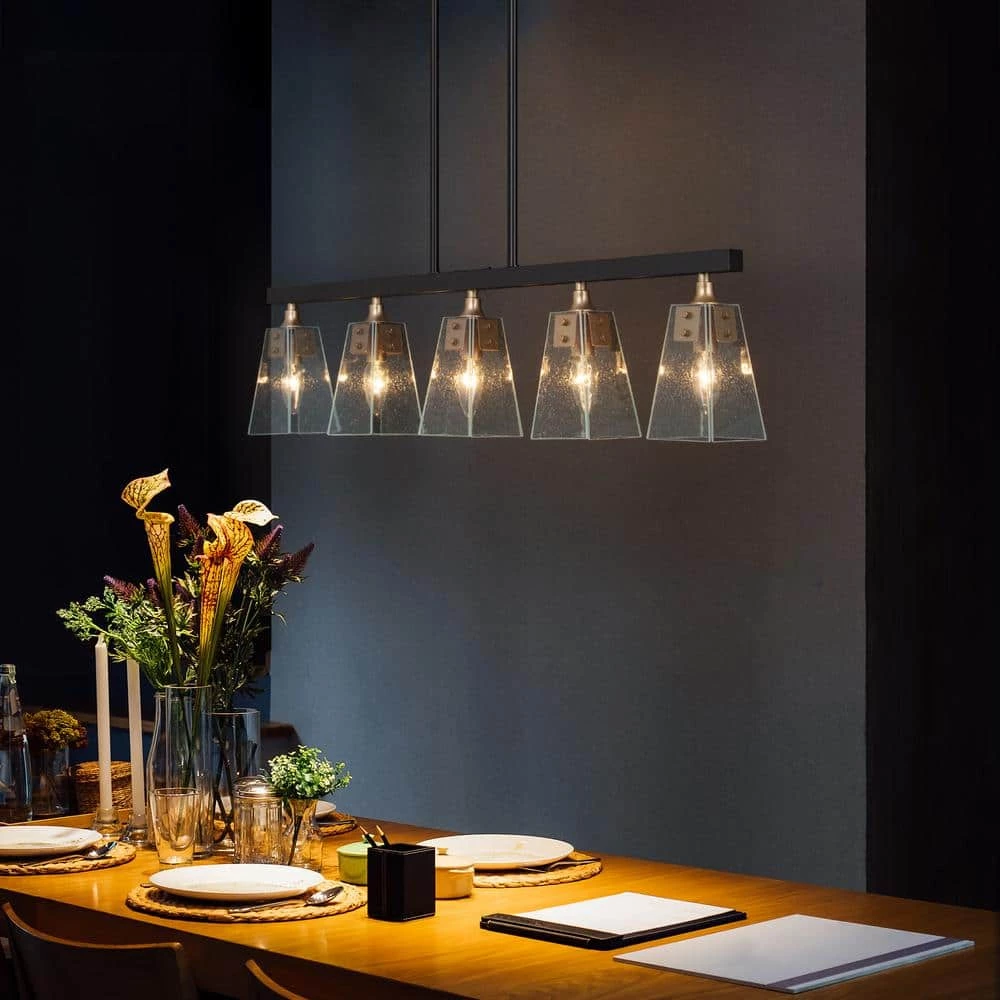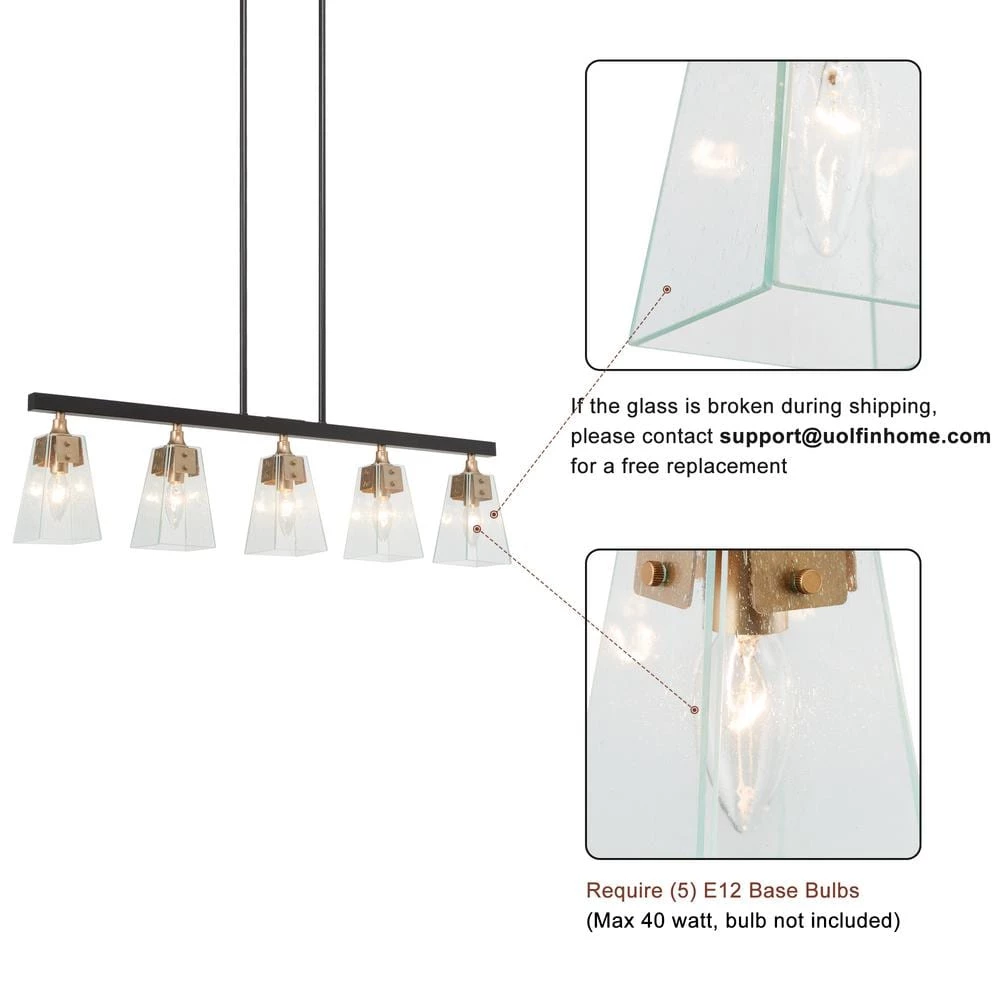 - MODERN AND MINIMALIST: looking for a classic and timeless chandelier? This modern linear chandelier by Uolfin Lighting offers a fashionable minimalist appearance with geometric seedy glass panels