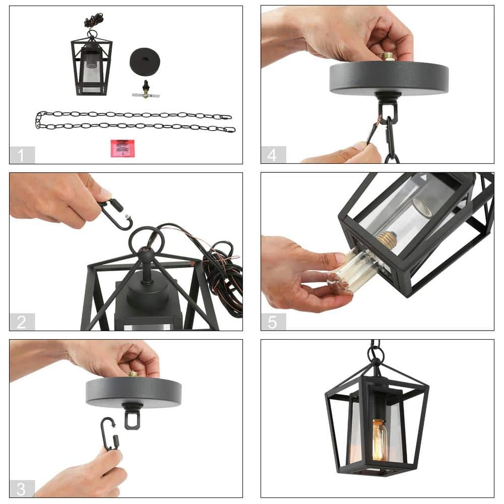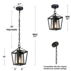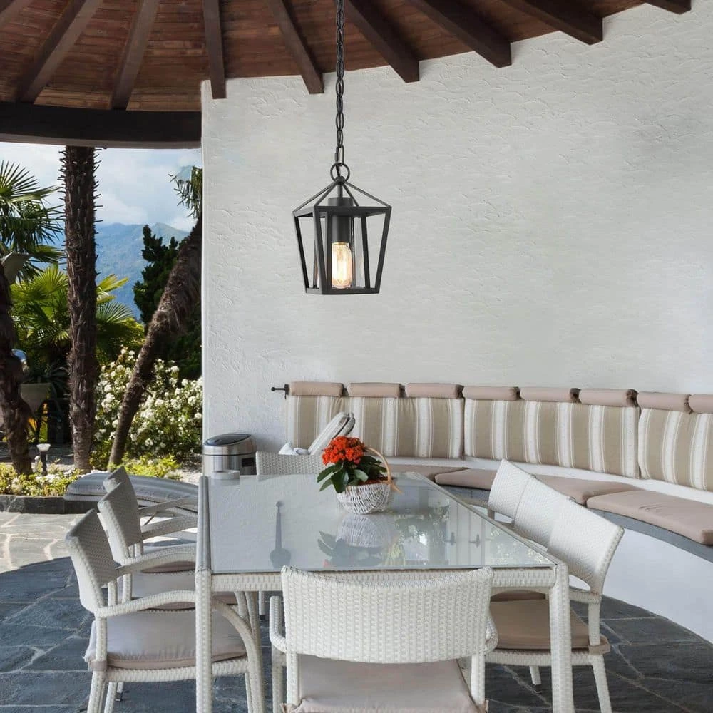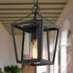 The Uolfin modern farmhouse black cage outdoor lantern pendant light series have industrial, country, farmhouse, cottage, and modern styles, all of these elements are included in one cohesive design. The fixture body is connected to the round canopy by a 59-inch adjustable suspension chain. The light fixture has a classic black finish for the modern retro look. The glass lampshade adopts clear glass so that the light of the ceiling hanging light can be fully irradiated. It supports up to a 60-Watt bulb (not included), which can give your space just the right amount of light. As an outdoor mini-pendant, it is recommended that you can hang a row in the place where you pass by every day and a row in the corridor or entrance space outside of your house. This simple and stylish rustic pendant light will surely decorate your space beautifully. Because of its waterproof and moisture resistant function, it can also be used indoors in addition to outdoors. This small black pendant light is also suitable for installation in kitchen islands, bedrooms, hallways, stairwells, and small spaces that require supplemental light sources.