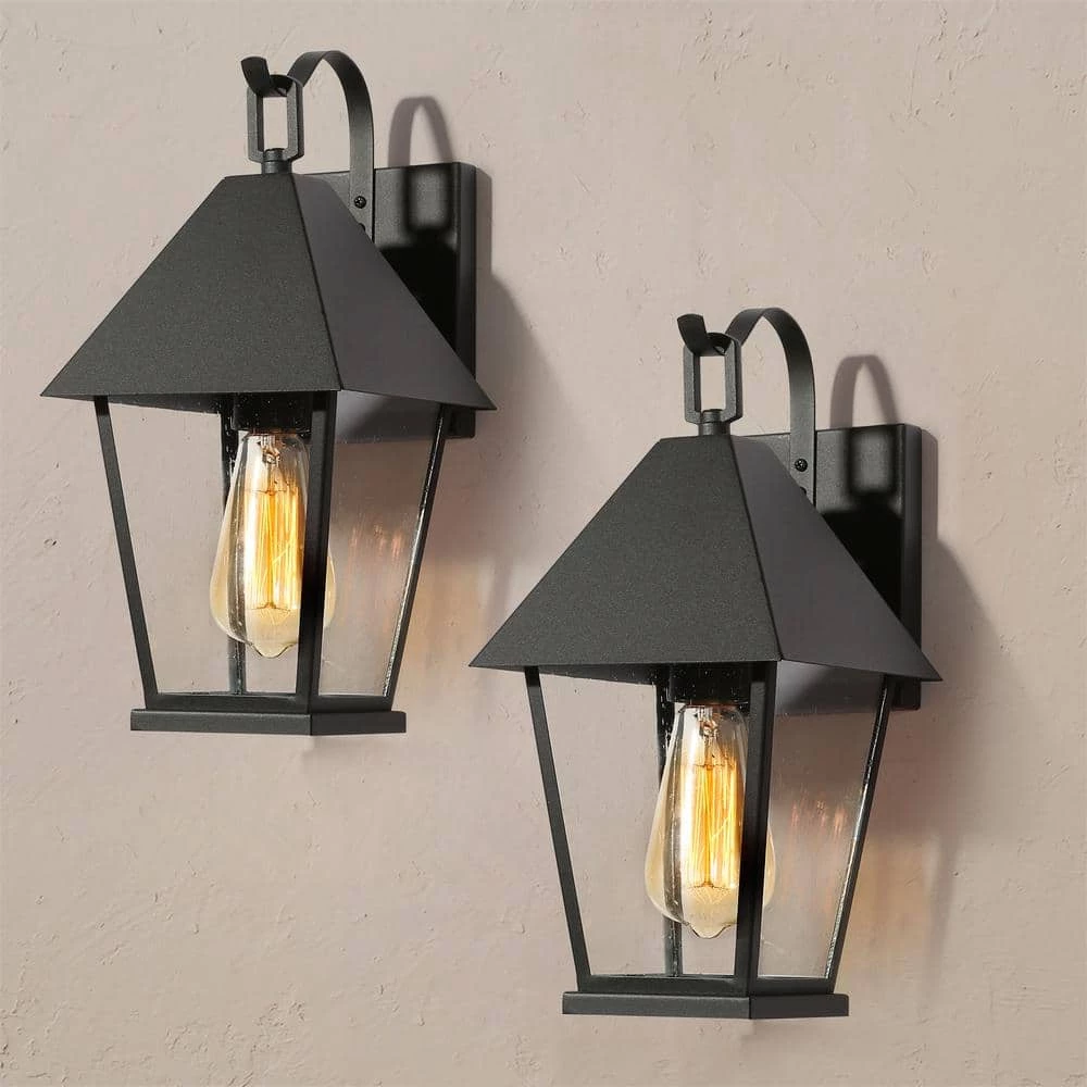 Born from classic lantern shape, blended industrial design elements, this Jared outdoor wall lantern sconce boasts classic nautical and railway styling with a beautiful seeded glass and a vintage weathered metal finish. A refreshing traditional appeal stems from this Uolfin Outdoor Matte black Wall Sconce. The simple details create minimalist ease for pairing to be a breeze in your outdoor decor scheme. For long-lasting use, this rustic outdoor light takes a sturdy metal construction, the thick glass lampshade is tightly integrated with the frame, perfectly preventing light bulbs from getting damaged under bad weather conditions. Perfect for mounting by the back door, by the garage, or as part of a pair by the front entrance, this wall lantern sconce will add light and flair to any outdoor space.