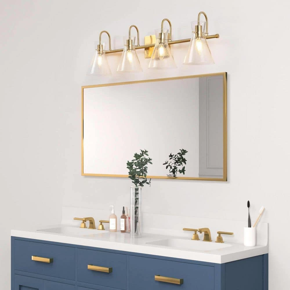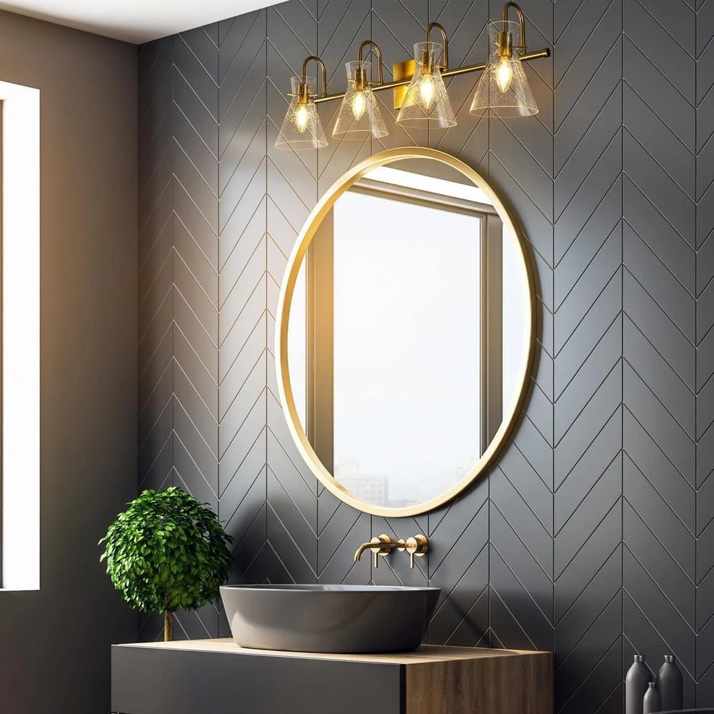 The modern black and electroplate brass bathroom vanity light from Uolfin Lighting walks into your bathroom, not only bringing light to the house but also adding a modern charm to your bathroom. This transitional metal light combines modern and industrial elements. Black with Uolfin Lighting’s upgraded plated copper finish perfectly decorates the modern bathroom light and becomes a trendsetter. Horizontal bar supported by the rounded canopy, the light holder is firm and the shade should not be deformed. The modern vanity light creates a minimalist and modern feel. The combination of gold and black shows a unique beauty. If your bathroom or powder room is looking for such a light, this wall sconce must be a good choice. Of course, this trendy wall light can be used in damp, but it is not limited to bathroom use. It can also be installed in other combinations in the room with your imagination.