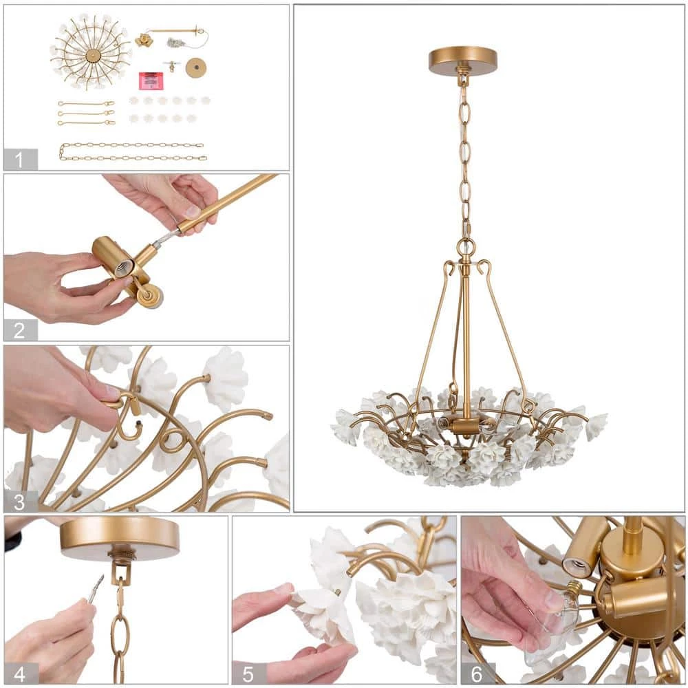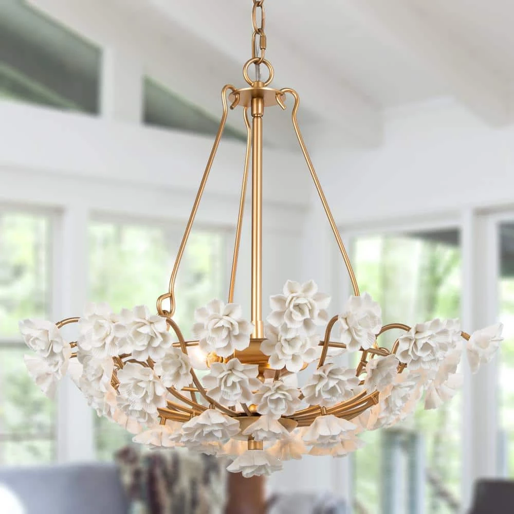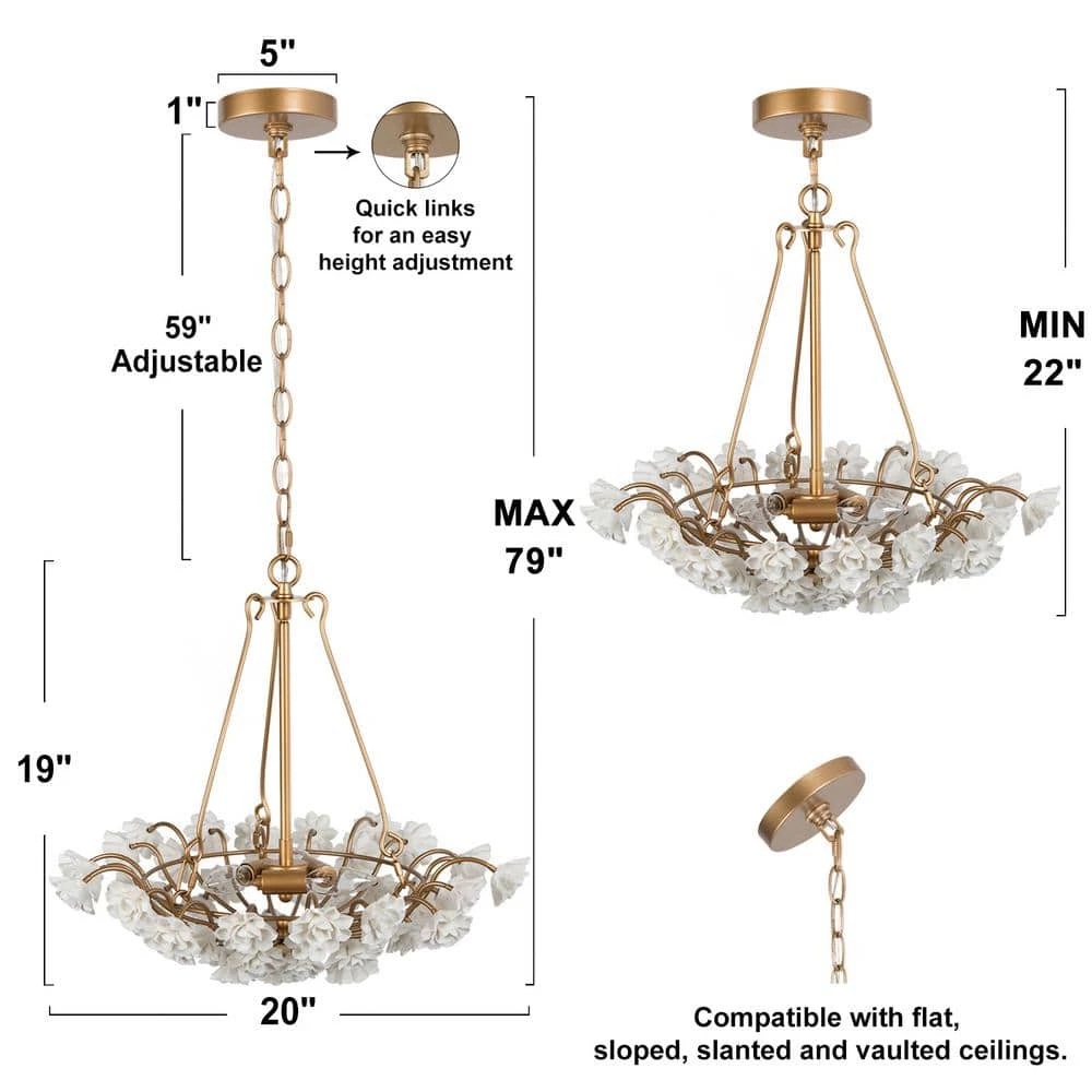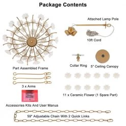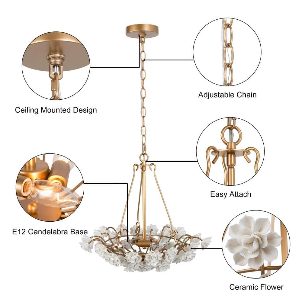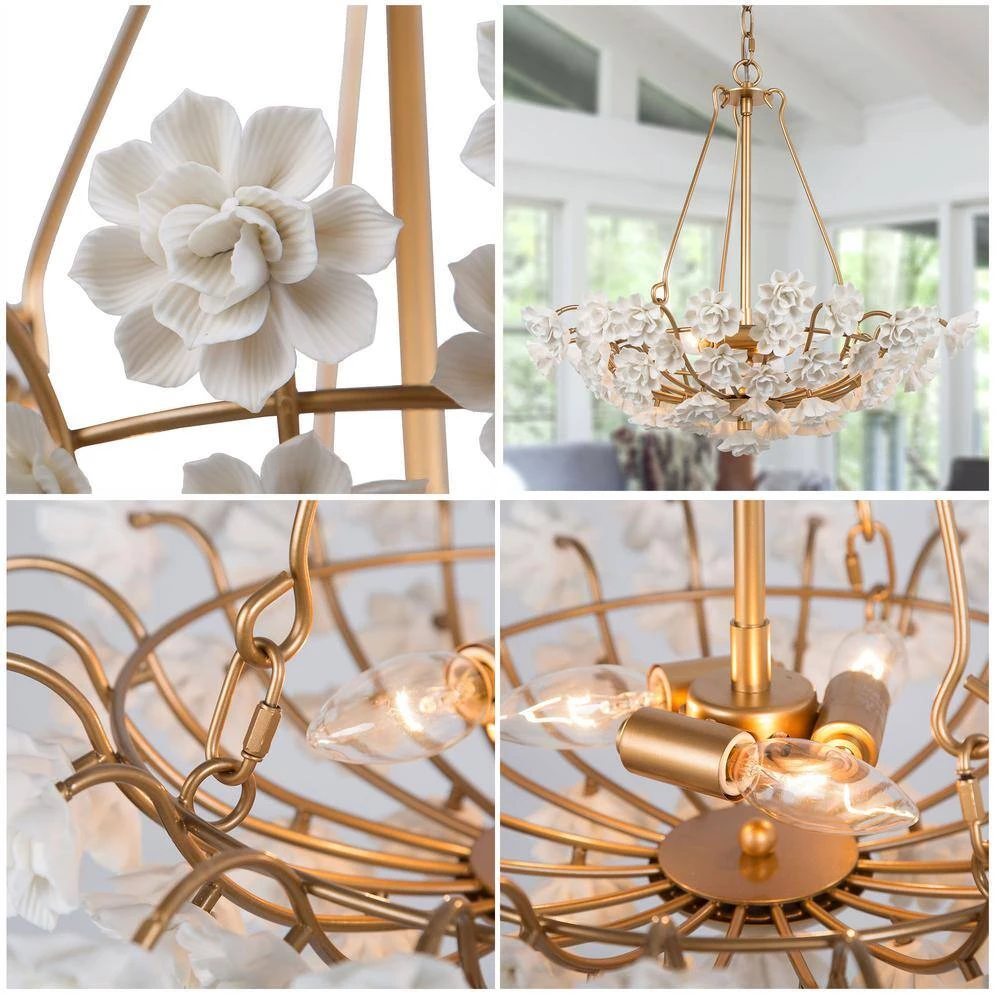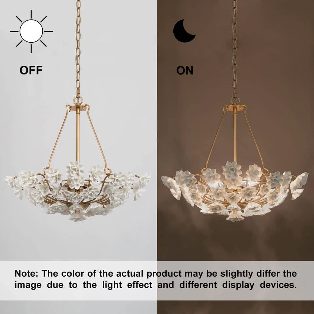 Never stick to 1 pattern, life is supposed to be filled with art and novelty. In modern life, light fixtures have no longer a utensil only for illuminating, and they have become a part to decorate your home. Choosing a suitable light fixture means improving home decor savor. This masterpiece light fixture from Uolfin Lighting gets inspiration from Gardenia Flowers. Delicate and beautiful ceramic flowers are handcrafted, clustered in a bowl shape around the lamp holder, when the 3 bulbs (not included) are powered on, the light which passes through the flowers bush casts a wonderful shadow on the ceiling and wall. 19.7 in. W and depth, for a chandelier light it is big enough, so this light fixture has wild applications: over the dining table, on the ceiling in the foyer/living room/bedroom, etc. Spreading beauty and artistic flavor all around.
