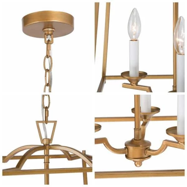 Candlestick lamp holder, lantern-shaped frame, vintage brushed gold color finish, classic designs are presented with modern craftsmanship. This Uolfin Gold Cage Chandelier Light is an indispensable part of creating the retro style of modern interior decor. Simple but exquisite, just-right size makes the light fixture well coordinated with various suspension scenes to produce different beauties. From the entryway, the living room, bedroom, kitchen island, or any other place, this chandelier is an unregretful choice.