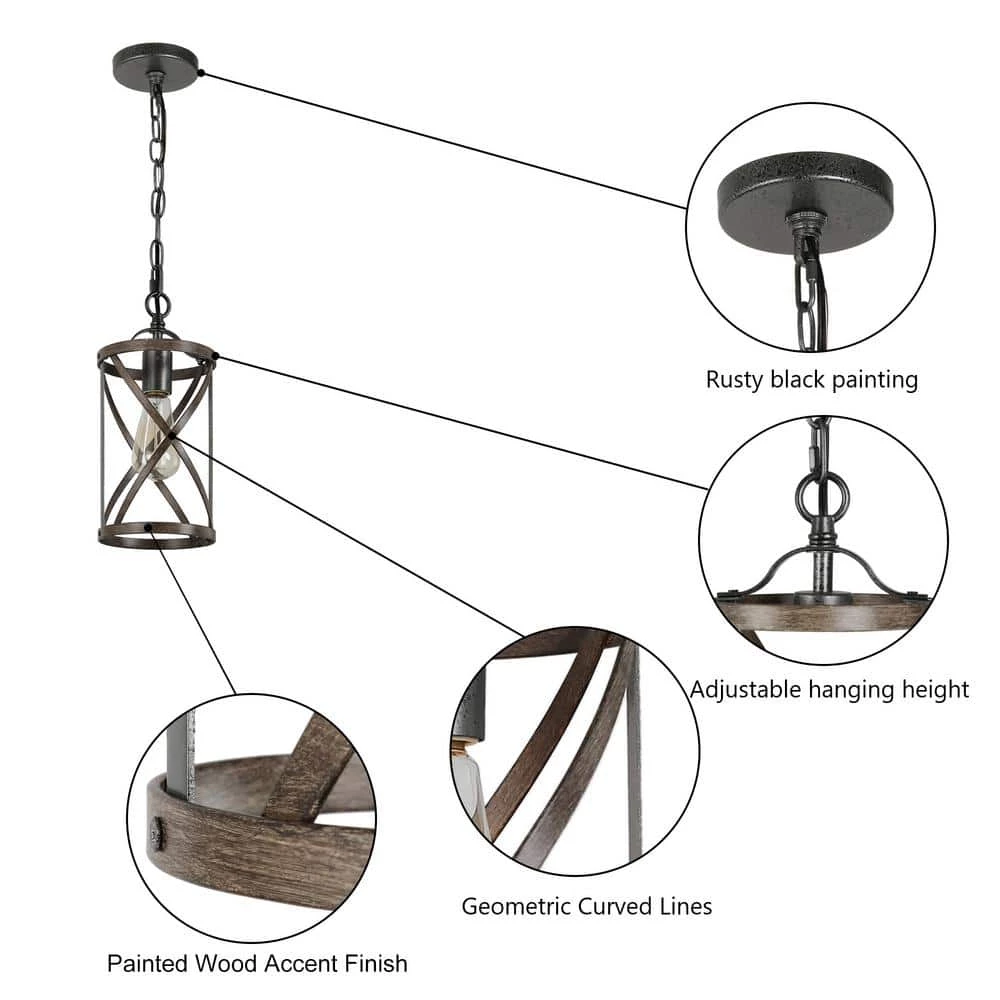 - MODERN FARMHOUSE APPEAL: Finished in the two-stylish paints of bronze and faux wood, and soft, contemporary lines showcase a rustic cage design, it is a perfect Retro Cage Pendant Light Fixture for updating the aesthetic of your kitchen island, dining room table, bedroom, or foyer, entryway.