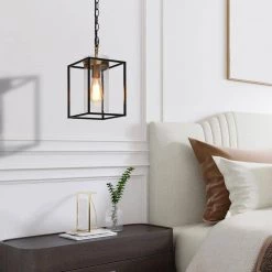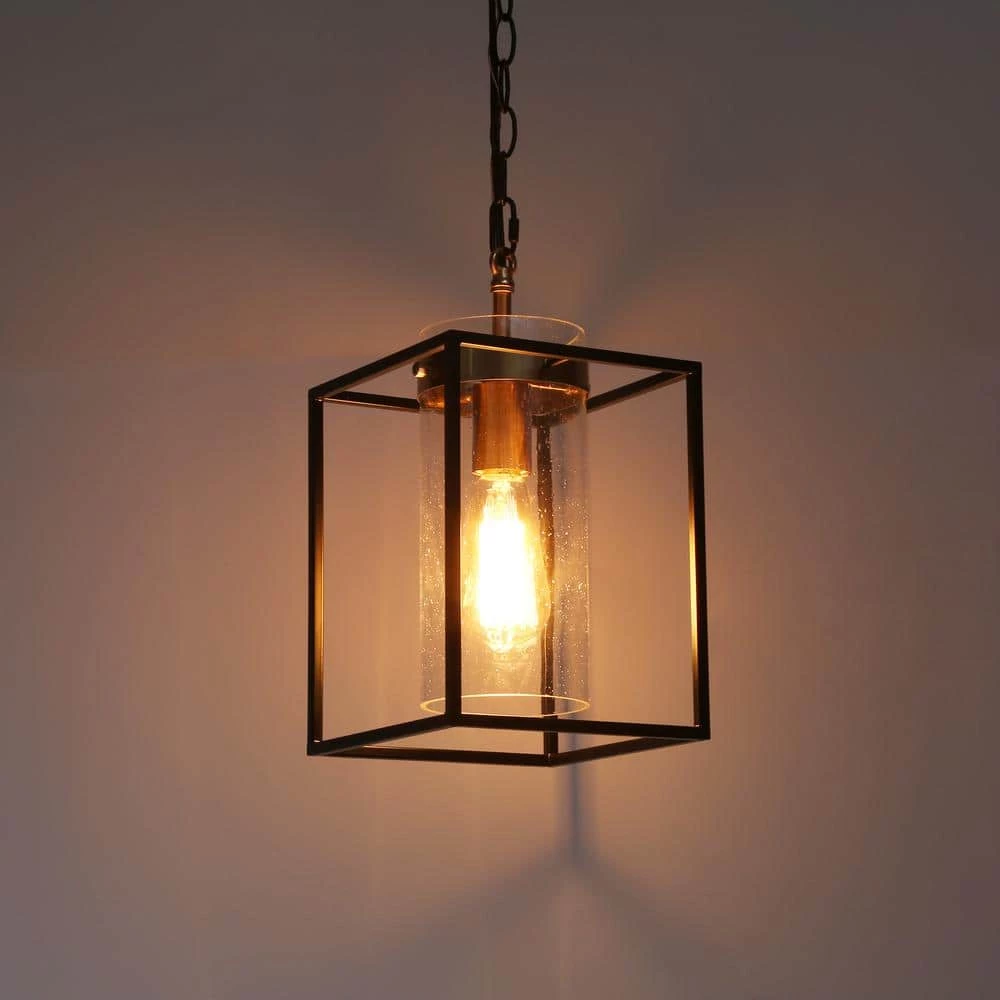 The modern geometric chandeliers by Uolfin consist of a square frame, gold bulb base, and a cylindrical clear seeded glass lamp shade. The black and gold color scheme perfectly matches your modern, transitional, industrial or simple house. For such a classic black pendant, it can be used alone, in pairs, or in combination. It is a good choice to put the industrial chandelier in the living room, bedroom, dining room, kitchen, hallway, stairwell, porch, or small corner.