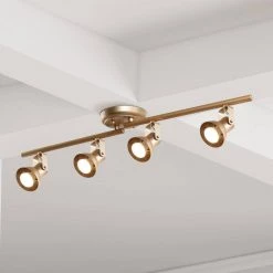 An ideal choice for residential lighting and light commercial lighting, this Uolfin LED champagne gold track lighting kit possess a distinguished modern look that leaves a luxurious impression with its minimalist silhouette and trendy use of hand-painted brass gold finish. Crafted of sturdy metal, move the track bars to customize different looks other than a straight line, like V-shape or L-shape. It features four 270° rotatable track heads that allow you easy to direct light where you need it most. This track lighting pendant is 7.5 in. H, which it’s also friendly to be used in the room with low ceilings. Complete with 4 dimmable LED bulbs (not included), strong functionality allows the linear ceiling light to stand out in terms of lighting