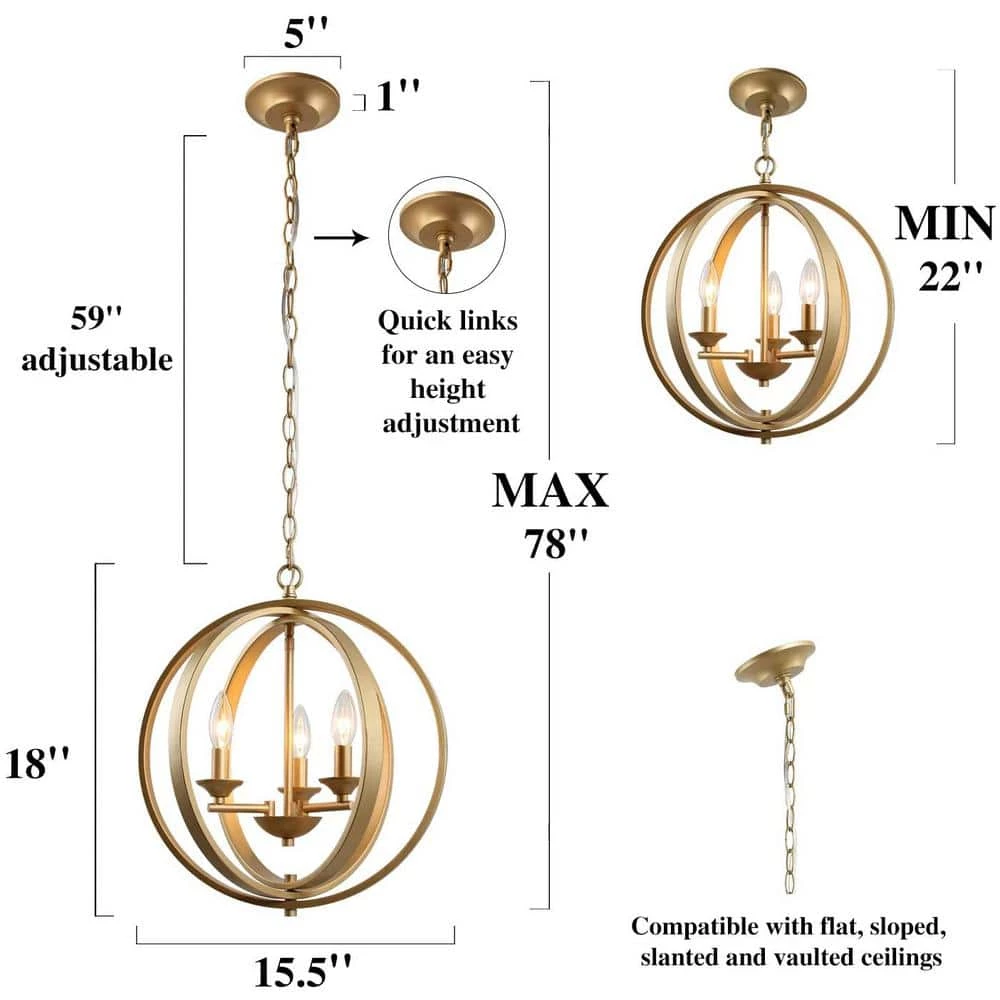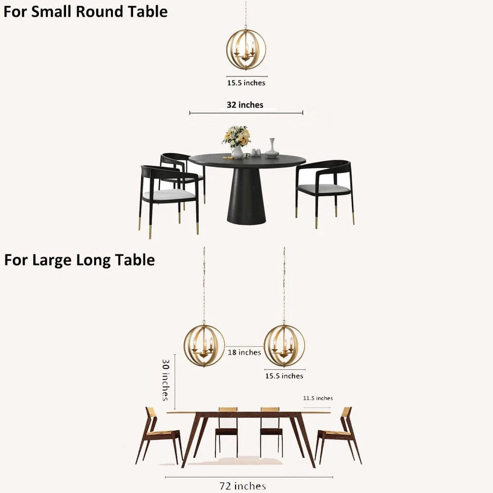 3 lights and 15.7 inches in size endows outstanding lighting function and wide applications to this trendy round chandelier light fixture, not only over the dining table, kitchen island, and the living but also in any places you prefer, the chandelier pendant light perfectly suits. Such a modern chandelier is the best choice to upgrade your home decor. 3 light bulbs (not included) are required, and with 15.7 inches in width, this chandelier can be a nice choice for illuminating, and we suggest hanging the chandelier over dinging tables under 32 inches. For larger tables, multiple hanging, or work with pendant lights can supply a better light source. Except for installs as a dining room chandelier, bedroom chandelier/ entryway chandelier/ foyer chandelier/ kitchen chandelier can be ideal choices