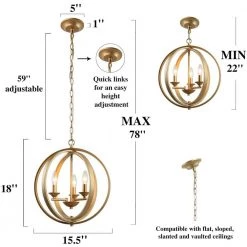 - DIMENSIONS: Fixture body 15.5 in. D x 15.5 in.W x 18.1 in. H; circle canopy 5 in. W x 1 in.H; Adjustable hanging chain 59 in. L