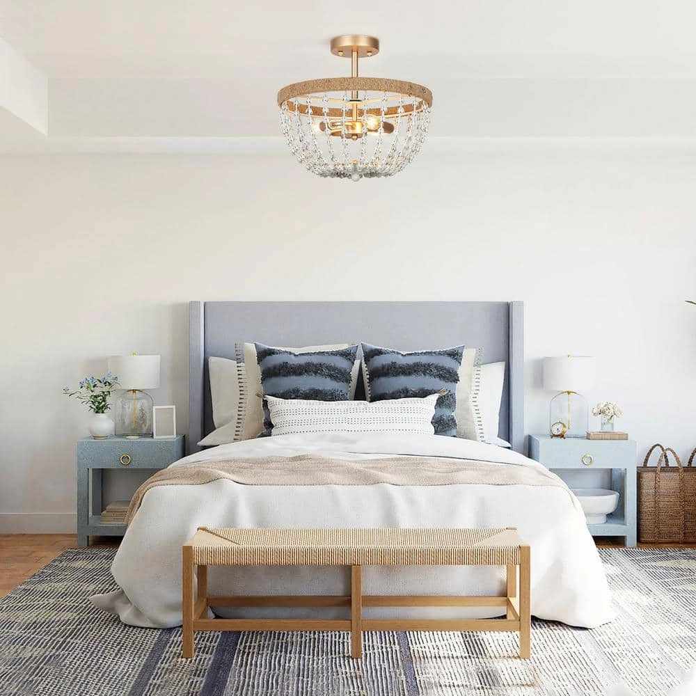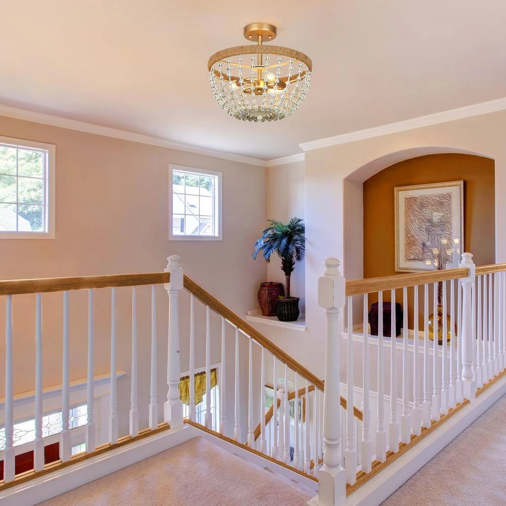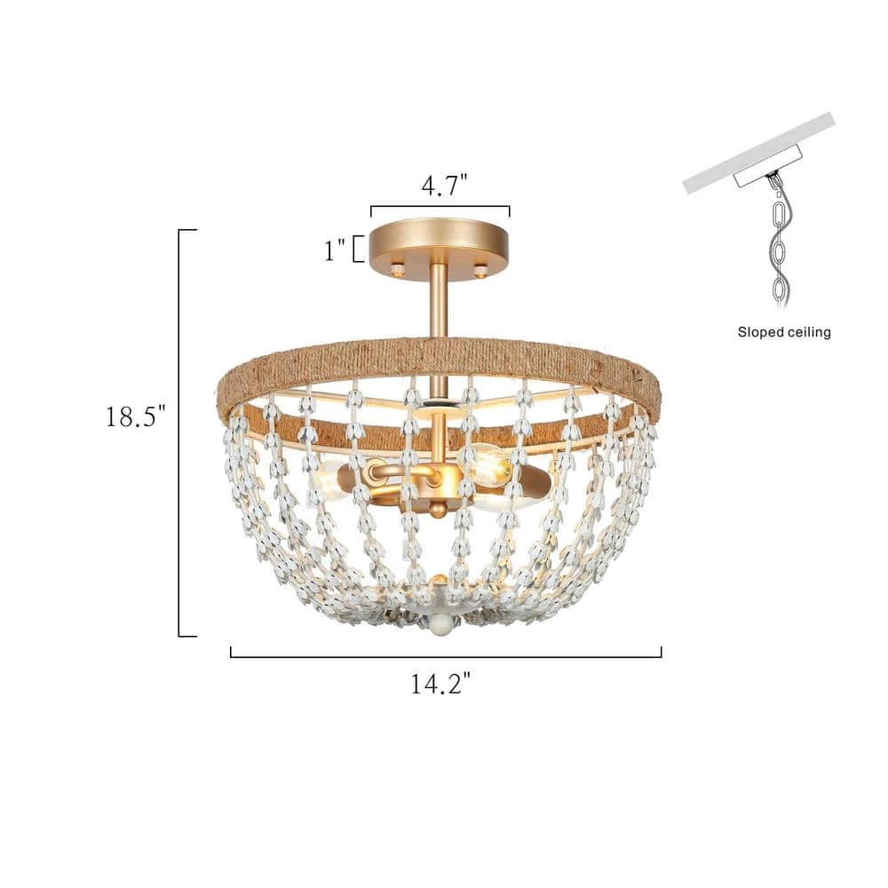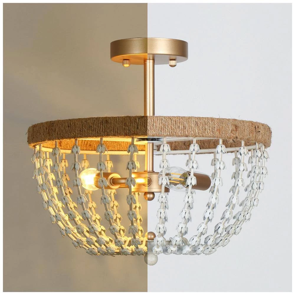 - HANDMADE FABRIC FLOWERS: Handmade flowers with twine bloom on the gold farmhouse classic semi-flush mount light. When the light shines on the flowers, it reminds you of the beauty of the sun shining on all things in nature, thus adding a rustic country atmosphere to your modern minimalist room