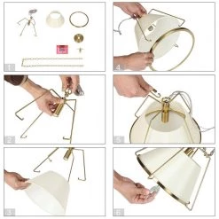 - Modern brass golden chandelier: the white drum-shaped lampshade with golden lines entwines the modern features. the simple combination of gold and white also matches the minimalist style