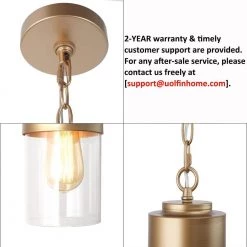 Simplify excess design on pendant light, returning to the pursuit of simple beauty. This pendant light produced by Uolfin Lighting takes minimal decoration to retouch the fixture itself. Pure gold color finish with cylinder shape design meet with a clear glass shade, concise and lively modern home decoration style is vividly displayed. Sized in 5 inches diameter, this pendant light is recommended to hang up over the kitchen island or dining table in groups, also ideal to use singly beside the bedhead or other places to light up a certain area.