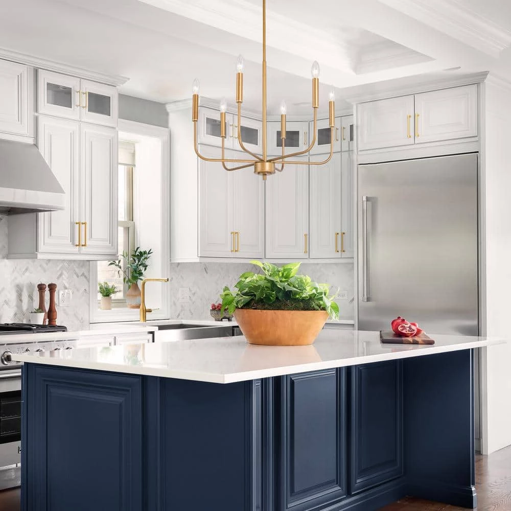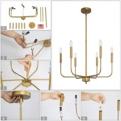 - EASY TO MATCH: This gold chandelier is easy to match. The modern design can easily be integrated into your room. Suspended alone, in pairs, or in multiples, an ideal hanging light in use over your hallway, foyer, entryway, stairwell, dining room, kitchen island, and breakfast nooks, providing the perfect balance of style, functionality, and class