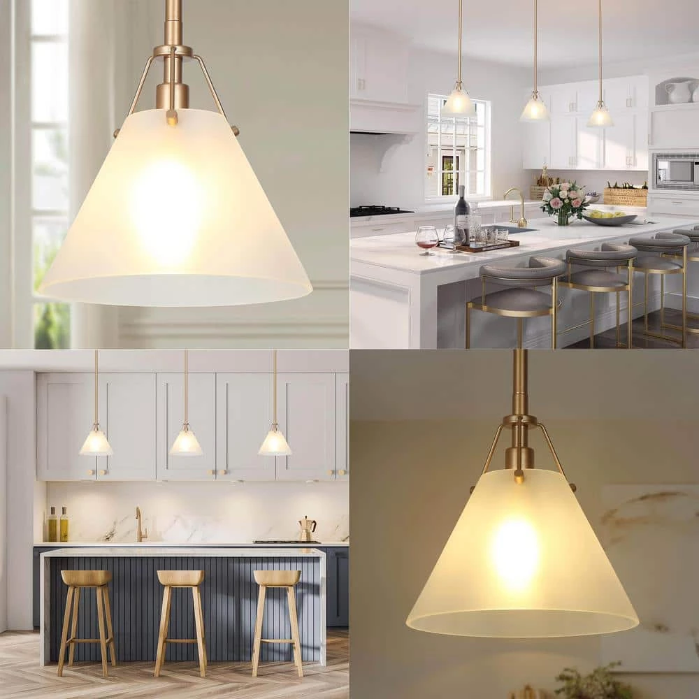 Luxurious and elegant, the pendant light from Uolfin Lighting fuses both modern & classic design elements and comes with a chic appeal. The metal parts of the pendant light take a shiny gold paint, while a frosted glass shade is matched. The pendant light visually looks like a work of art with gold and white jade combined, creating a modern glam atmosphere. Working with a hanging device of (6) 10 inches rods, the hanging height of the pendant light can be adjusted from 20.9 inches to 70.9 inches. For the kitchen island, dining room, living room, bedroom, and so on places, it is a good addition.