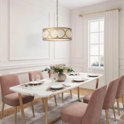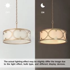 - ELEGANT MODERN SHADED CHANDELIER: The white drum-shaped lampshade with golden lines entwines the modern features. the simple combination of gold and white also matches the minimalist style