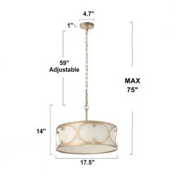 - DIMENSIONS: The modern farmhouse dining room pendant lights with fabric shade are 17.5″W x 17.5″ D x 14 “H, round canopy 4.7 in. W x 1 in. H (Maxium Height: 75 in., Minmum Height: 17.5 in.)