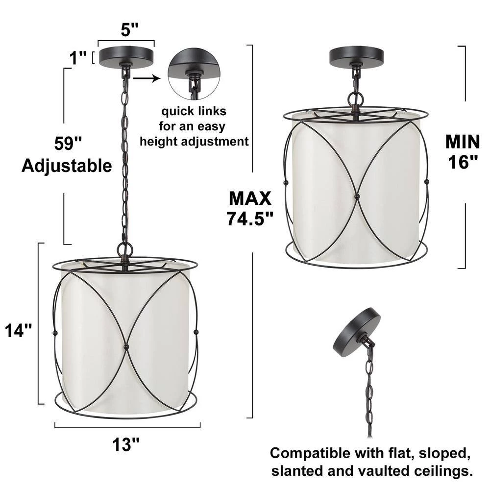 - Wide application: the modern black drum chandelier light is designed to work on all ceilings including flat, sloped/slanted, or vaulted ceilings, comes with a 59 in. (about 5 ft.) adjustable hanging chain that accommodates multiple ceiling heights (overall height maximum: 74.5 in., overall height minimum: 16 in.)