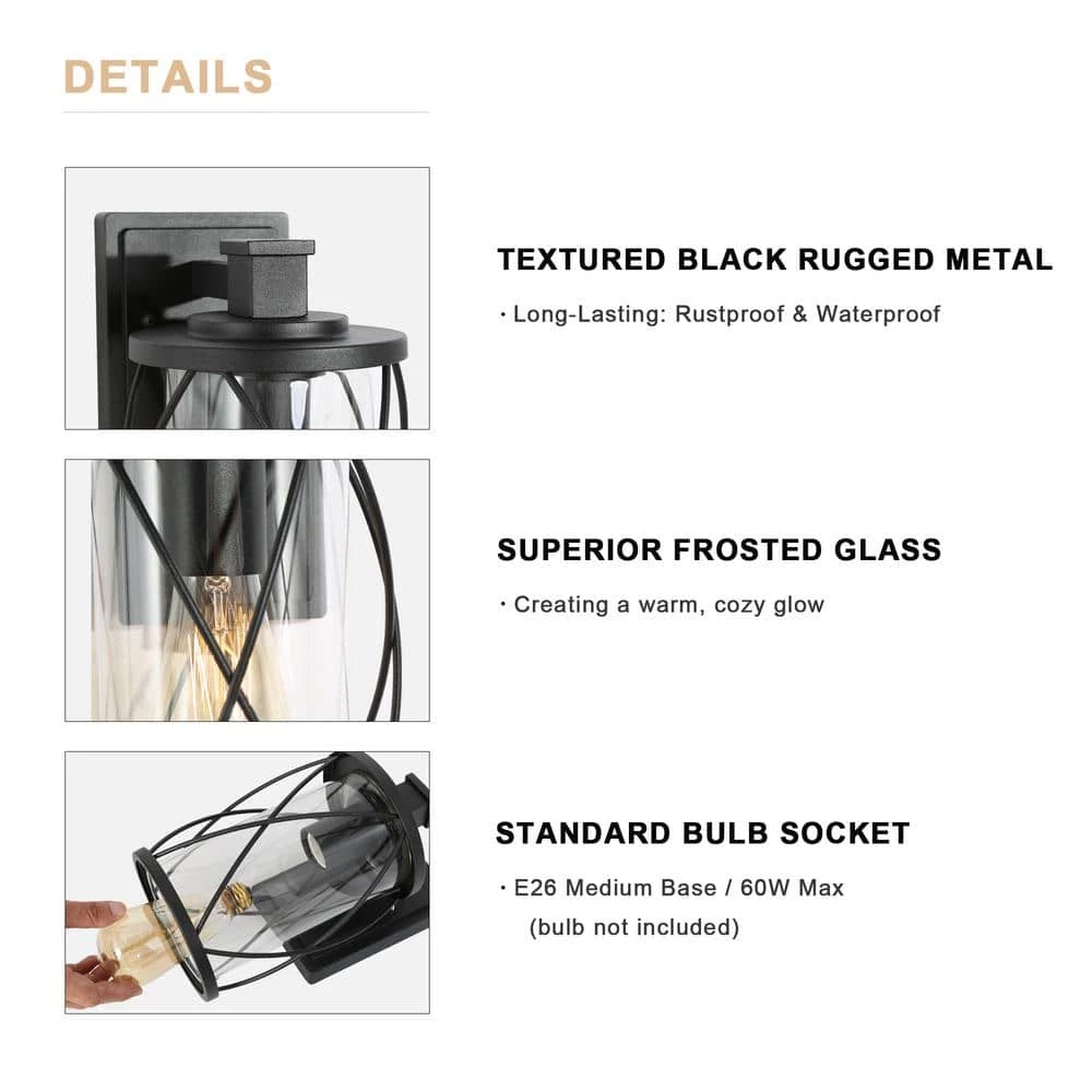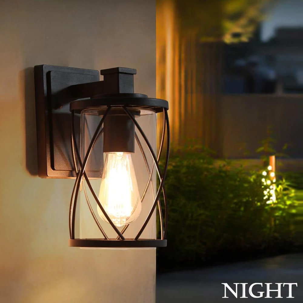 The clean lines and hand-riveted accents make the black outdoor wall light an ideal choice for industrial-style exterior decor. A rustic cage-shaped framework with clear glass shade provides an unobstructed view of the lantern’s sleek interior. The matte black finish further enhances the chic appearance of this refined collection, transitioning comfortably from traditional farmhouse to modern industrial decors. This Uolfin outdoor light can reach the function that other outdoor lights do and even better. Abandon complicated decoration the outdoor wall light has a rustic modern aesthetic with a cage-shaped frame and cylinder clear glass shade which protects the bulb from dust and weather conditions. Perfect for mounting by the back door, by the garage, or as part of a pair by the front entrance, this wall lantern sconce will add light and flair to any outdoor space.