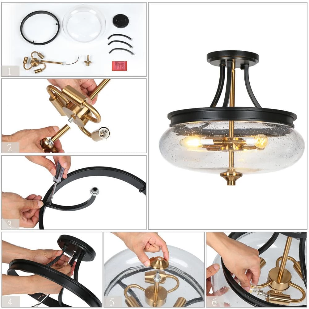 - EASY TO INSTALL: Just follow the 6 steps as our image shows. You can easily install this modern semi-flush mount ceiling light