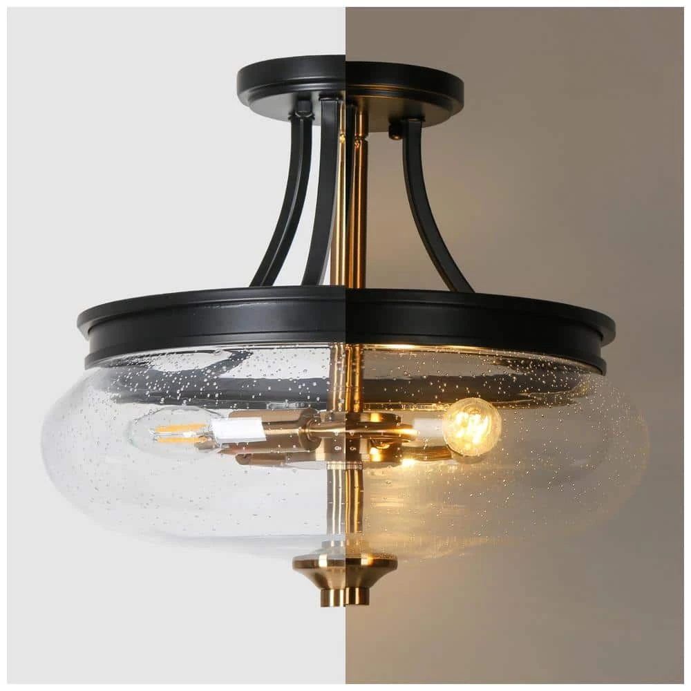Brighten up indoor spaces with this Uolfin modern transitional semi-flush mount light. The center bowl shape design and seeded glass shade complement each other, creating visual beauty together. When lighting up the bulbs (not included), soft lights pass through the seeded glass shade, casting a wonderful glow, the black, and brass color finish of the modern semi-flush mount ceiling light body also shimmers. Benefited from 3 ceiling lighting holders which are arranged in a ring shape, the contemporary semi-flush mount lighting emits soft and warm lights. If you are looking for a ceiling light idea that can be added to your charming kitchen island, dining room table, bedroom, foyer, entryway, living room, etc, this Uolfin chandelier is a versatile choice.