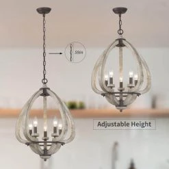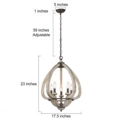 This Uolfin weathered wood chandelier light exudes a laid-back modern style. The shapely sleek silhouette features a water-drop lantern form, with a combination of the elements from weathered solid wood to dark iron, it will brighten your space and blend right in with your coastal, lodge, or eclectic home. It installs easily with a 5-feet hanging chain allowing you to create the ideal hanging length, even in a room with high ceilings. Suspended alone in your entryway/foyer, or on the side of your sofa/bed. In multiples in rows, or irregularly hanging up and down over your kitchen island, dining area, this simple but stylish rustic pendant light is sure to punctuate your space beautifully. Listed by UL for proven durability without compromising function and aesthetic value.