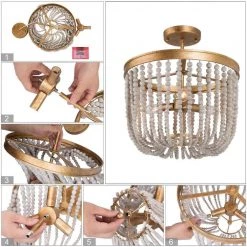 When this antique gold semi-flush mount light by Uolfin Lighting is hung in your house, a simple atmosphere blows on your face. The gold color is used as the base of the whole lamp body, and the hand-made retro finishes, every in. of the lamp body has been carefully crafted, and the rust stains of various shapes are telling the passing of time. The entire drum-shaped chandelier is surrounded by strings of wooden beads. If you are a retro suitor, this lamp is a perfect match for you. If you are looking for such a lamp in your bedroom, living room, kitchen, island, dining room, or stairwell or hallway, this old golden ceiling light will be a versatile choice. Whether your home is a modern farmhouse, transitional, classic, cottage, or rustic style, it can be easily controlled.
