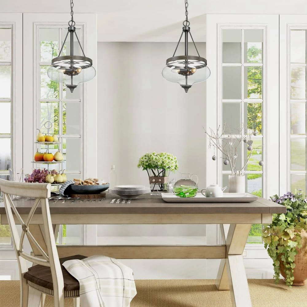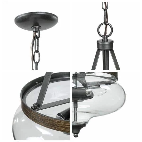 Brighten up indoor spaces with this Uolfin Modern Transitional Island Chandelier Pendant Light. The center bowl shape design and clear glass shade complement each other, creating visual beauty together. The fixture body is connected to the round canopy by a 59-inch adjustable suspension chain, suitable for flat or sloped ceilings. When lighting up the bulbs (not included), soft lights pass through the clear glass shade, casting a wonderful glow, the black, and faux wood color finish of the modern pendant lighting body also shimmers. Benefiting from 3 ceiling lighting holders which are arranged in a ring shape, the contemporary semi-flush mount lighting emits soft and warm lights. The retro design can easily be integrated into your room. Suspended individually, in pairs, or multiples, it is the ideal hanging light. Whether it’s in the kitchen, living room, hallway, dining room, foyer, bedroom, or stairwell it’s a great place to hang this chandelier light.
