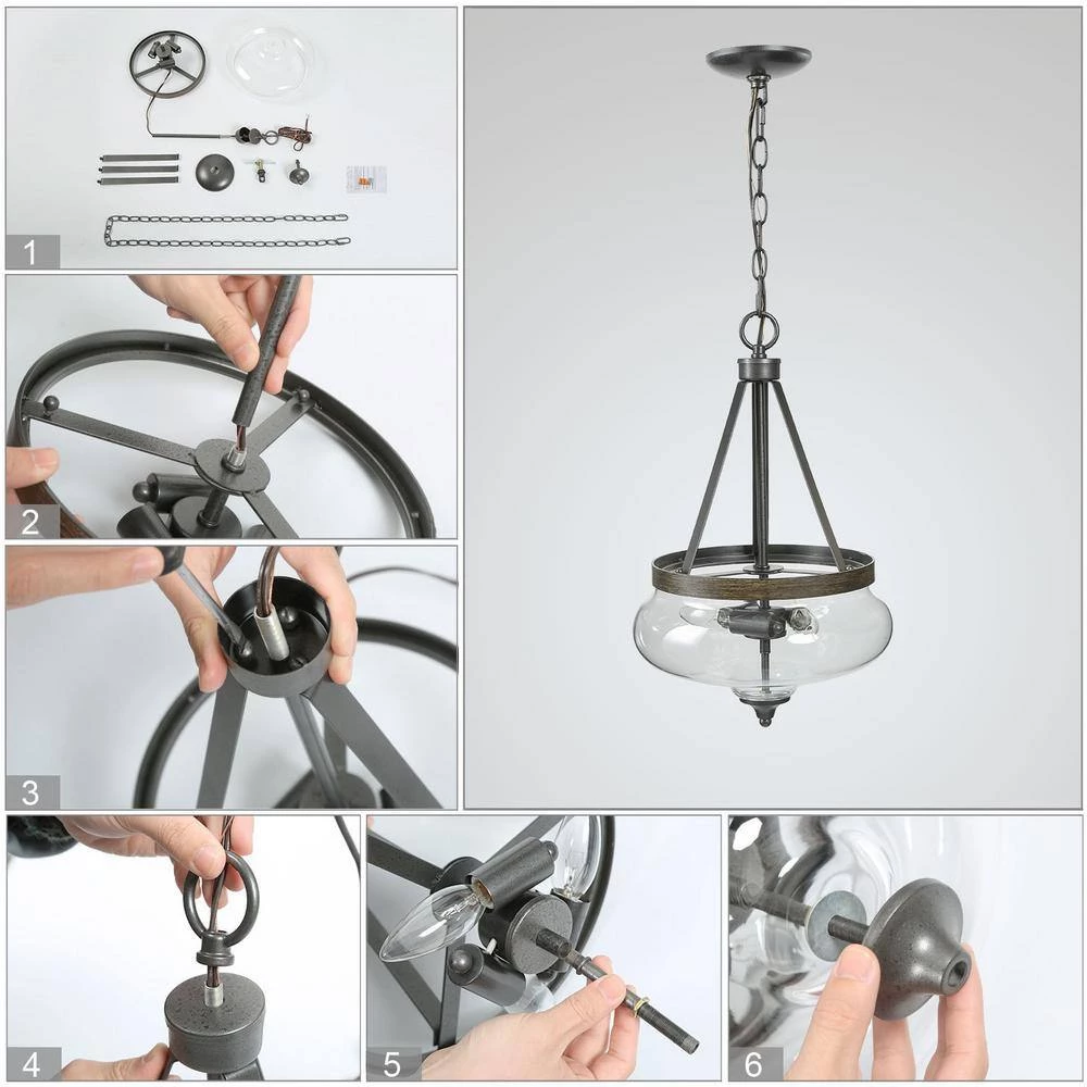 - EASY TO INSTALL: half-assembled construction for quick installation, just with 6 steps as our image shows, you can easily update the aesthetic of your room, all mounting hardware of the globe chandelier light fixture is included