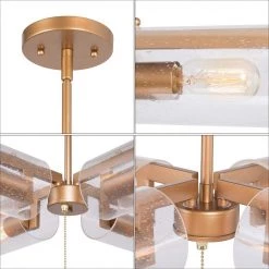 Uolfin’s Loe Series Golden Fashion 4-Light Chandelier. Seeded cylinder glass shades, minimal design, and gold finishes combine the best in both Vintage and Modern design elements. The adjustable down rod would be particularly well suited to above a round dining table or a contemporary kitchen island.