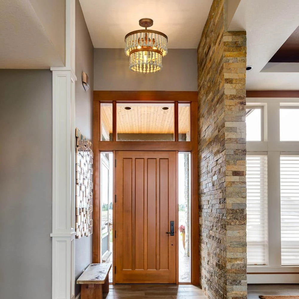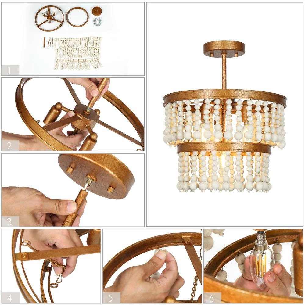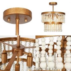 When this antique gold semi-flush mount light by Uolfin Lighting is hung in your house, a simple atmosphere blows on your face. The gold color is used as the base of the whole lamp body, and the hand-made retro finishes, every in. of the lamp body has been carefully crafted, and the rust stains of various shapes are telling the passing of time. The entire circle-shaped chandelier is surrounded by strings of wooden beads. If you are a retro suitor, this lamp is a perfect match for you. If you are looking for such a lamp in your bedroom, living room, kitchen, island, dining room, or stairwell or hallway, this old golden ceiling light will be a versatile choice. Whether your home is a modern farmhouse, transitional, classic, cottage, or rustic style, it can be easily controlled.