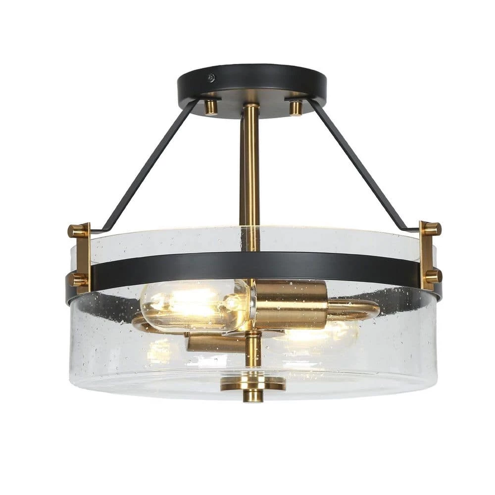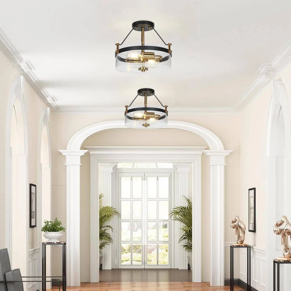- MODERN TRANSITIONAL SEMI-FLUSH MOUNT LIGHTING: Incorporate rustic retro elements into modern lighting design, the black and electroplated brass ceiling light reflects the transitional style well in modern contemporary home decoration