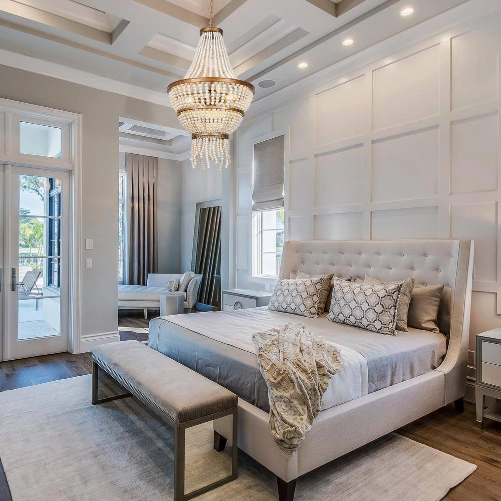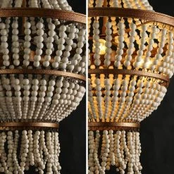 - DESIGNED DISTRESSED WHITE WOOD BEADS: With a unique shape, the hand-polished distressed white wood beads wrap around 3 candlestick-shaped lamp holders. When the light passes through the tiered beads, it could create a beautiful light pattern on the wall and provide sufficient charming light for your living room, dining room, bedroom, and foyer