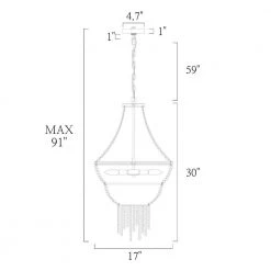 - ADJUSTABLE HANGING LENGTH: This empire boho chandelier light contains a 59-inch long chain. The longest hanging length can reach 91 inches. If you need to adjust the length, you can take out a few chain links to meet your matching needs