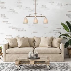 A perfect mix of contemporary design, this 3-light modern Gold island chandelier hanging light fixture by Uolfin gold series is ideal for adding a simple yet elegant appeal to your glamorous kitchen island, dining room, foyer/entryway, living room, or bedroom. Delicately crafted of sturdy metal, its champagne gold finish and fabric shade create instant romance ambiance in your space, making the designer pendant light easily adaptable for a range of home decor. This 3-light gold linear fabric pendant light comes with a max 60 in. adjustable down rod that accommodates multiple ceiling heights. Whether in the countryside or a busy city, this on-trend cylinder island pendant light fixture will always add modern appeal to any interior by its seamless minimalist silhouette. Listed by UL for proven durability without compromising function and aesthetic value.