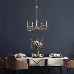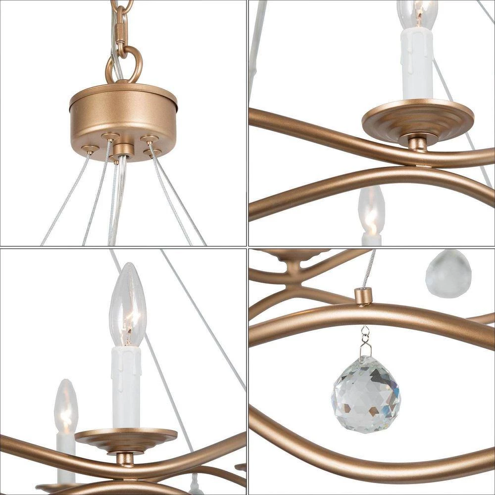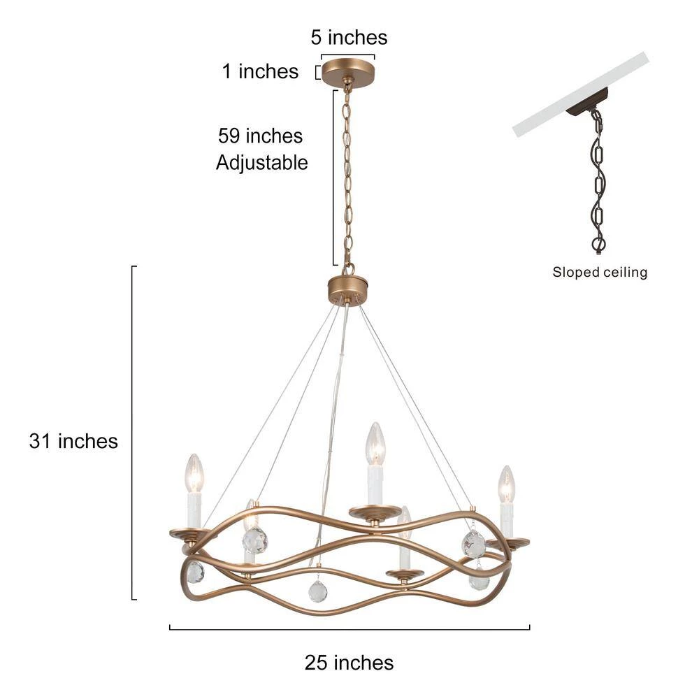 This Modern Farmhouse Gold Island Candlestick Chandelier Light is the best choice for your new home. Finished in gold waves, the Chandelier Light Fixture has a unique retro charm. Combining gold finished with vintage candlestick design, this chandelier Light burst an antique appeal in modern decor style, perfectly suits various interior decorations. The gold chandelier body is connected to the round canopy by a 59 in. adjustable suspension chain, suitable for flat or sloped ceilings. The 25 in. light fixture can use (5) E12 bulbs of up to 40-Watt (not included), able to illuminate a large enough space through its open design lines. Small house, modern, industrial, minimalist, contemporary, mid-century modern, transitional, or farmhouse style, this contemporary chandelier can easily match. If your living room, bedroom, dining room, kitchen island, entrance hall, stairwell, or guest room are looking for such a chandelier, this golden modern candlestick chandelier will be a good answer.