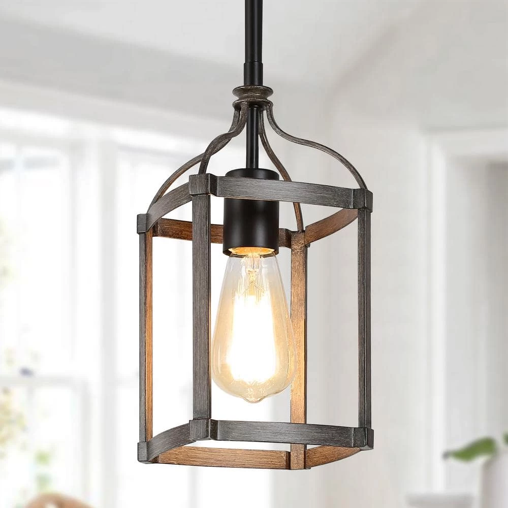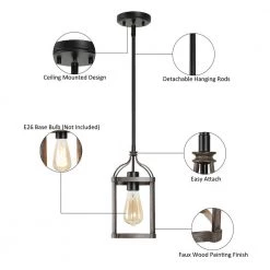 - MODERN FARMHOUSE APPEAL: finished in the 2-stylish paints of black and faux wood, and soft, contemporary lines showcase a rustic cage design, it is a perfect retro cage pendant light fixture for updating the aesthetic of your kitchen island, dining room table, bedroom, or foyer, entryway