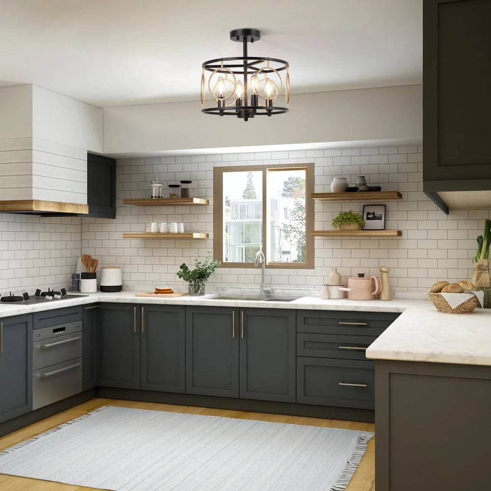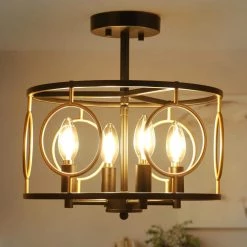 The ceiling light is excellent to match with the ceiling that is not too high. And if you are also looking for ceiling light, this Uolfin modern black and gold semi-flush mount is a great choice. With its simple color scheme and styling design, you can easily match it in various styles of rooms, such as modern farmhouse, rustic, minimalist, transitional, or even industrial styles. The open design makes cleaning and changing bulbs become an easy task, and the same light can illuminate your room to the maximum. Kitchens, stairwells, wall-in closets, walkways, and foyers are great for installing this classic ceiling light.