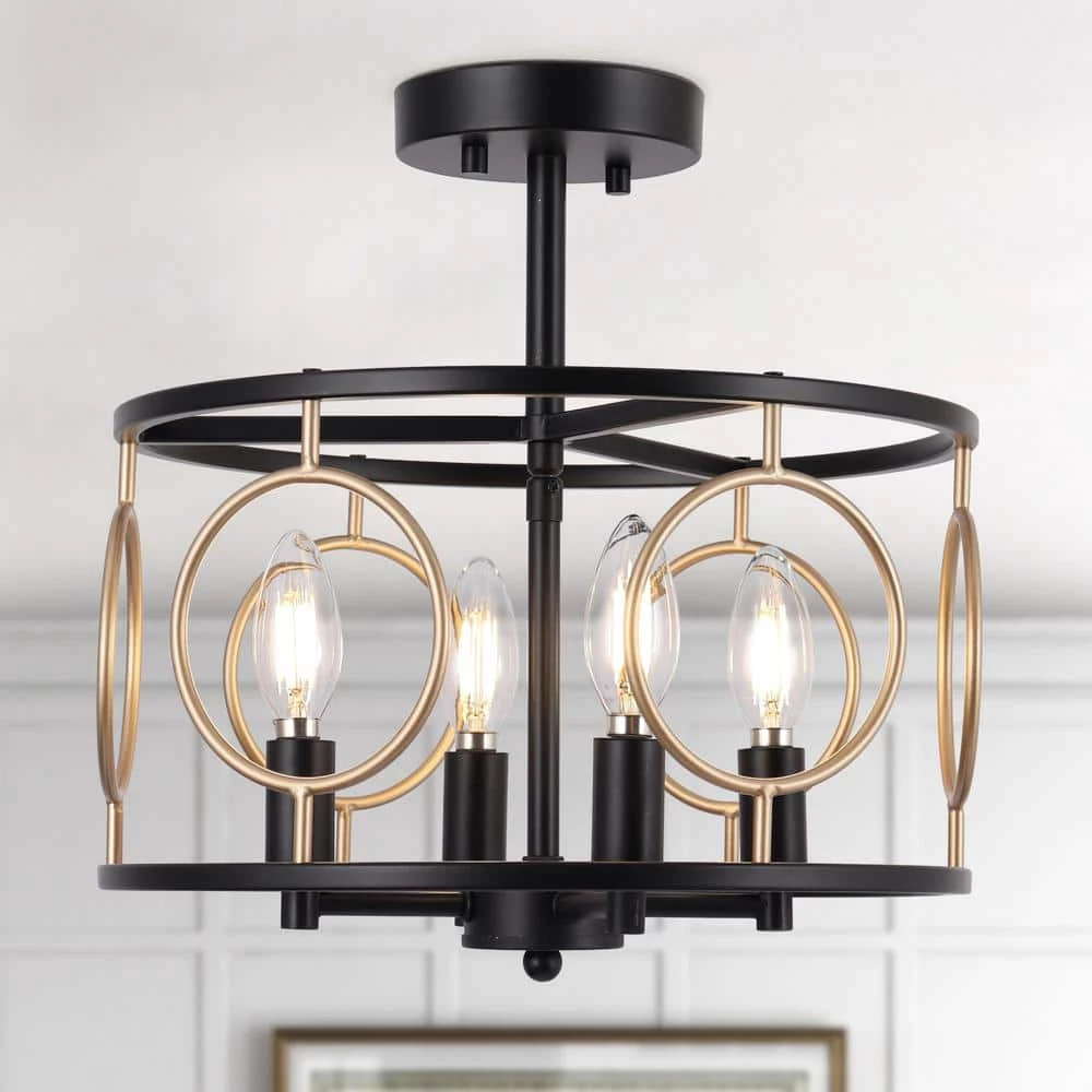 - MODERN SEMI FLUSH MOUNT: This ceiling light comes with matte black and gold finish, a simple circle combination that displays the modern style.