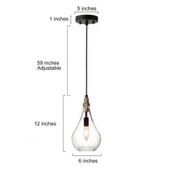 - DIMENSIONS: Overall measures 6” W x 6″ D x 12″ H; Round Canopy: 5″ W x 5″ D x 1”H. This 1-Light Black Farmhouse Pendant Light Fixture is ideal for updating the aesthetic of your kitchen island, dining room table, bedroom, or foyer/entryway