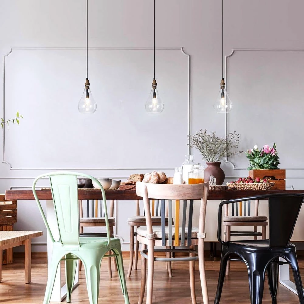 Wake up the ceiling and let the light dance in traditional or modern settings! In farmhouse style, black metal with real wood, combining seedy glass and rustic charm, this 1-light wood pendant light for kitchen island by UOLFIN complements a myriad of styles from the modern farmhouse and country lodge to classic mid-century and transitional cottage. The glass shade is embellished with seeded design completing the farmhouse style, creating a raindrop-like appearance and a unique pattern with the light on. Compared with a typical chandelier or island light, the pendant light has a uniquely endowed feature: flexibility in DIY. It has almost no limits in the ways of installation. Hanging a set of these pendant lights in line over the kitchen island or long dining table (the amount can be controlled depending on the customer’s need), or being clustered to hang over the small round table (ideal size is around 32 inches), both are brilliant at illuminating and provide an amazing modern appeal to refresh your dining room.
