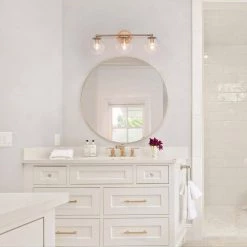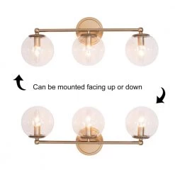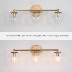It is hard to believe that design a bathroom oasis with the 22 in. 3-Light Modern Brass Gold Indoor Wall Sconce Bathroom Vanity Light with Clear Globe Glass Shades can be such easy stuff. The Antique Gold Bathroom Vanity Light captures the old with the new. Stunning clear glass globe shades create a gorgeous glow, bring a boost of brightness and sassy Mid-Century Modern charm to your sweet home with this Uolfin Lotus Collection. Each light base is anchored by a single, rounded bar with a clear, decorative thick globe glass for an added crafted detail. Globe-style clear glass shade rounds out the design with a sleek touch, and pairs perfectly with a range of home decor. This breathtaking bathroom vanity lighting fixture is a must-have for illuminating any bath, vanity setting and as a wall sconce for entrance, in urban industrial, rustic, mid-century modern, transitional, traditional, farmhouse, or other style interiors. It’s time to breathe new life into the mundane every day with timeless and truly transformative lighting.