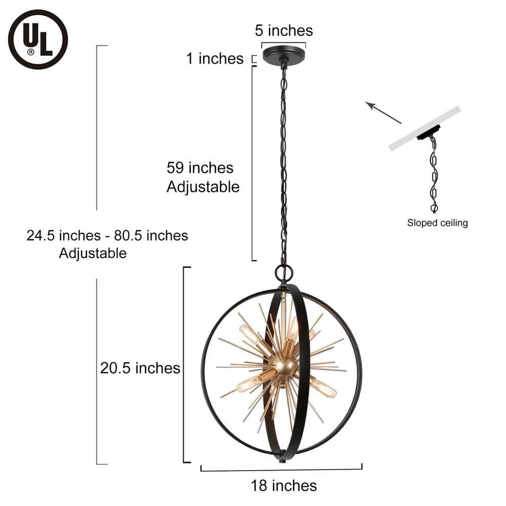 - DIMENSIONS: fixture body 18.1 in. D x 18.1 in. W x 20.5 in. H, circle canopy 4.7 in. W x 1 in. H, adjustable hanging chain 59 in. L
