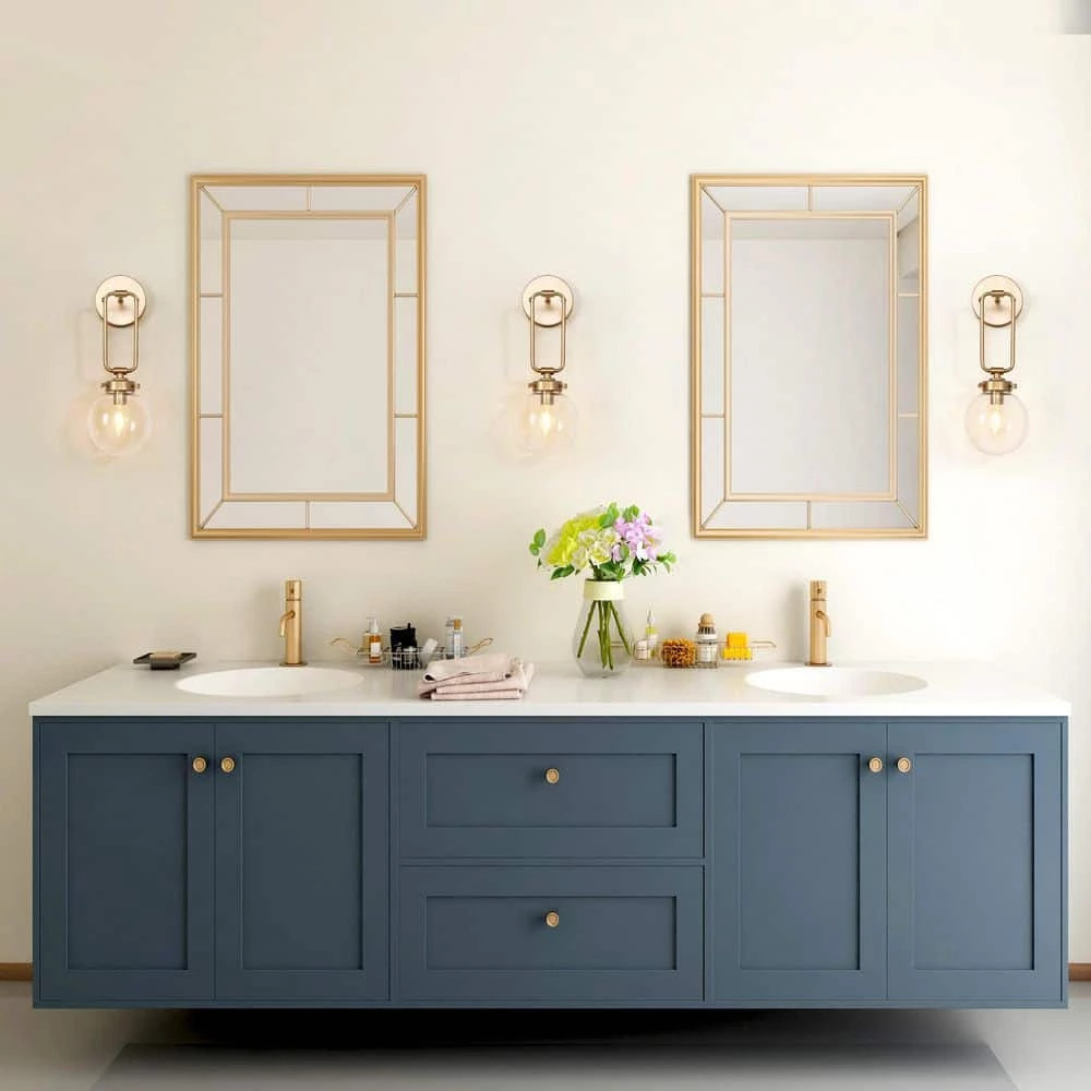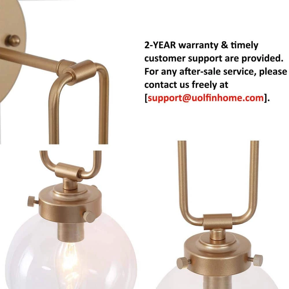 Refreshing the home decor with a modern design, this gold globe wall sconce light from Uolfin Lighting ingeniously combines the gold lamp body with the clear glass shade. Lamp body finished in a charming gold painting and takes a fluent loop shape design adding a sense of playful, decorating with a globe clear shade, the whole light fixture emits a trendy appeal. Meanwhile, with the glass shade, the light bulb is prevented from damage, the bathroom vanity light is ETL listed to be safe use in damp locations. From the foyer, the living room, bedroom, kitchen, and even bathroom vanity area, this modern wall sconce light is widely applied.