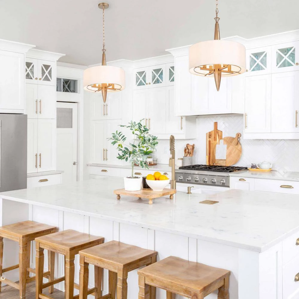 The Champagne Gold Farmhouse Drum Chandelier by Uolfin walks into your warm home, and its modern design perfectly fits with it. The light passing through the fabric cover appears softer and warmer. The arrival of this modern chandelier not only illuminates the room, but also becomes a beautiful decoration. This golden fixture symbolizes the good taste of the homeowner, carefully creating every corner of the home and paying attention to the details of life. Whether it is a modern minimalist style house, country, modern farmhouse, contemporary, or cottage, it is very suitable. If you want a modern themed living room, or you are looking for a chandelier idea that can be added to a dining room, bedroom, kitchen, stairwell or hallway, this Uolfin chandelier is a versatile choice.