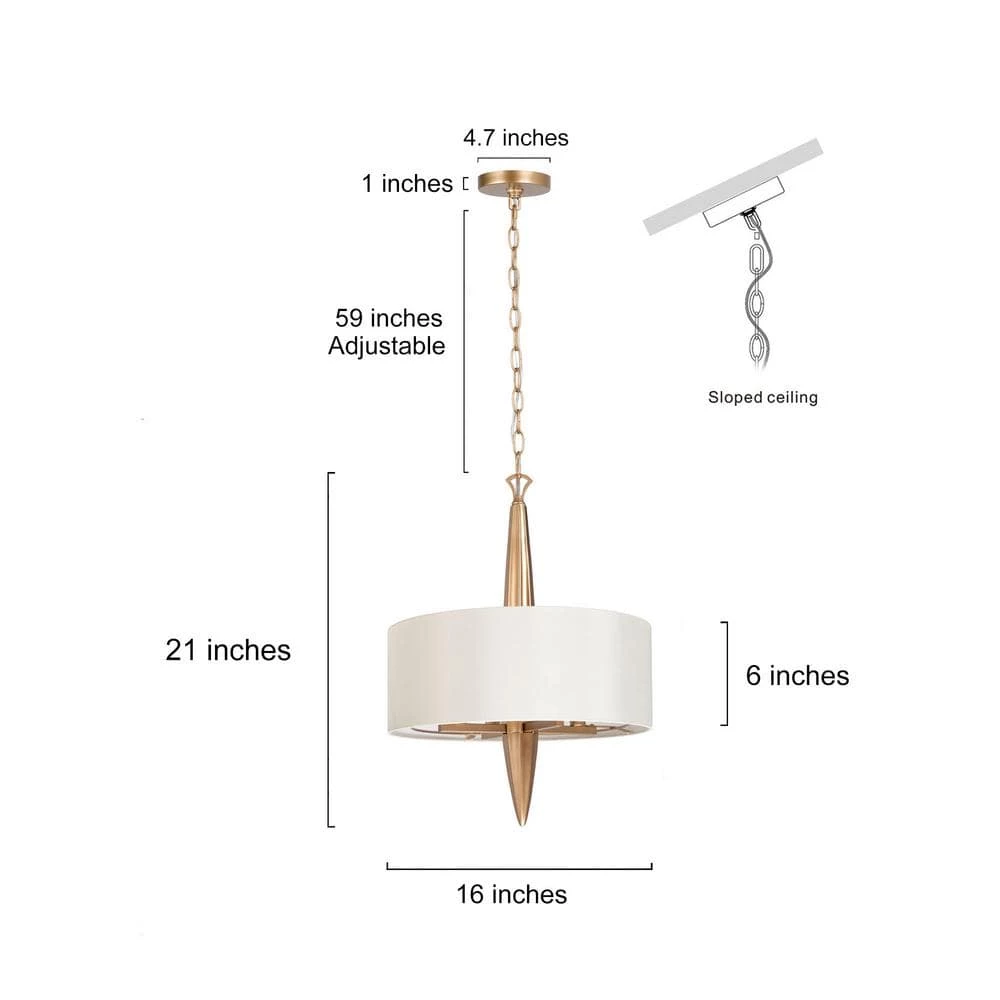 - Modern golden chandelier: the natural fabric is wrapped with a golden decor, showing the modern style vividly, the simple combination of gold and fabric yellow also complements the minimalist style