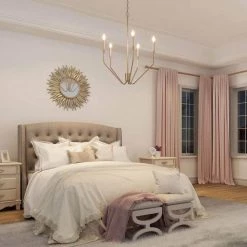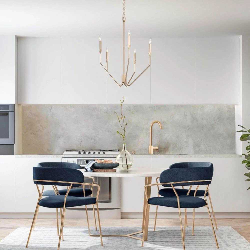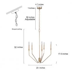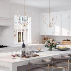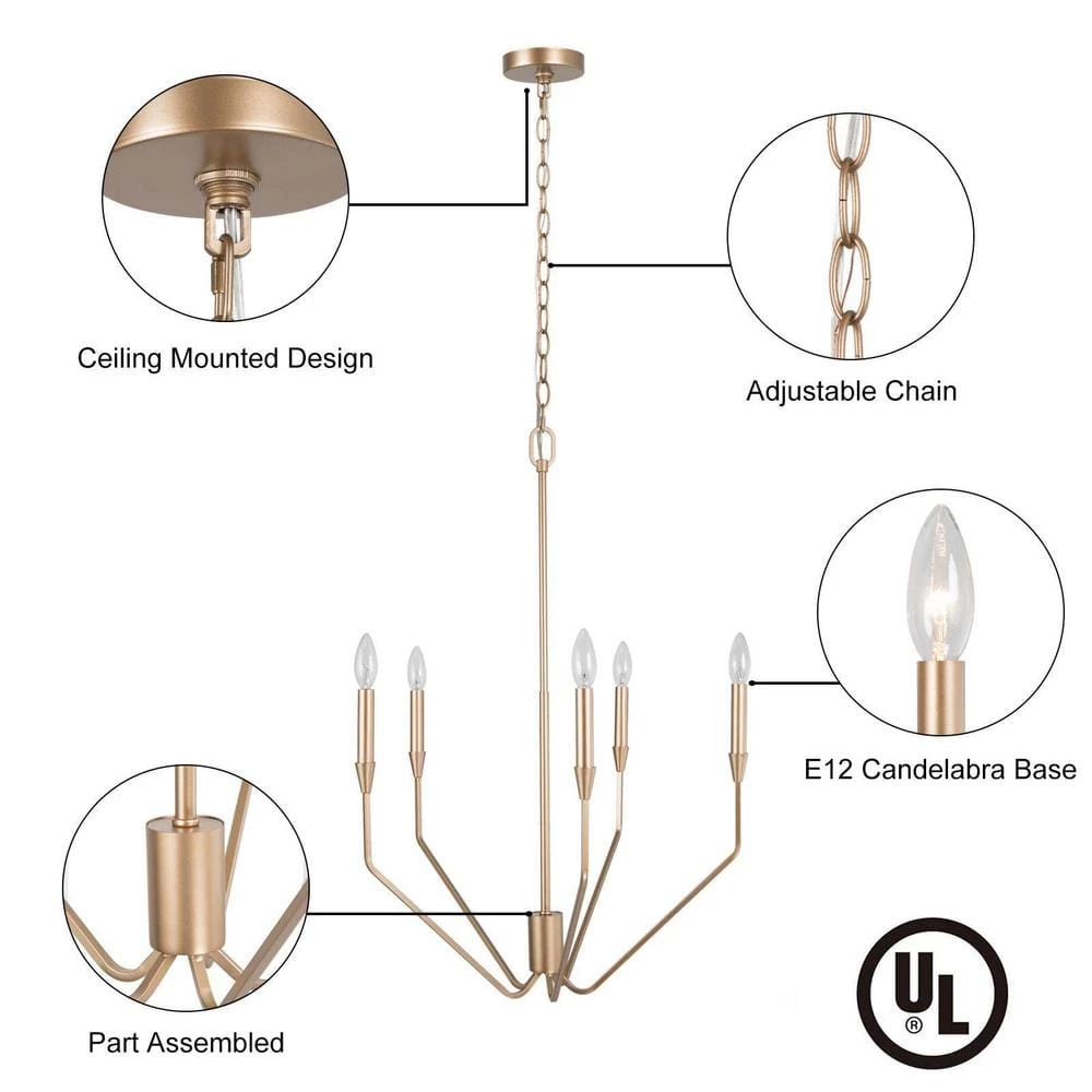 This Modern Farmhouse Gold Island Candlestick Chandelier Light by Uolfin Lighting can clearly see all its structures at a glance, simple and elegant without losing creativity. Crafted of sturdy metal, the champagne chandelier features 5 classic curved arms with a rich hand-painted gold finish. The geometric arms and clean lines make the retro chandelier light simple and elegant, adding a modern farmhouse flair to your room and showing the owner’s chic taste. This simple yet stylish traditional chandelier pendant light adds a modern touch to any of your spaces and is ideal for your living room, kitchen island, bedroom, foyer, and dining area.