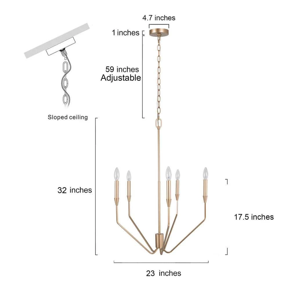- MODERN FARMHOUSE ISLAND CHANDELIER: Modernized the rustic farmhouse candlestick chandelier with a hand-painted gold finish, and the 5 curved arms meet at the bottom point to cast a beautiful light and shadow